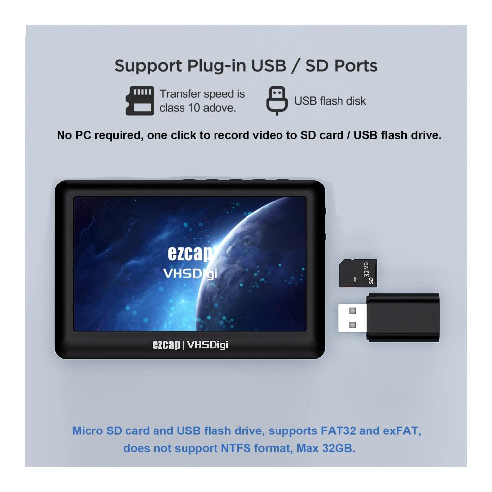 Kein Computer oder Software erforderlich,Übertragen Sie die Filme direkt auf eine SD-Karte/USB-Flash-Laufwerk.Unterstützt FAT32 und exFAT, nicht unterstützt NTFS-Format, Max 32GB.