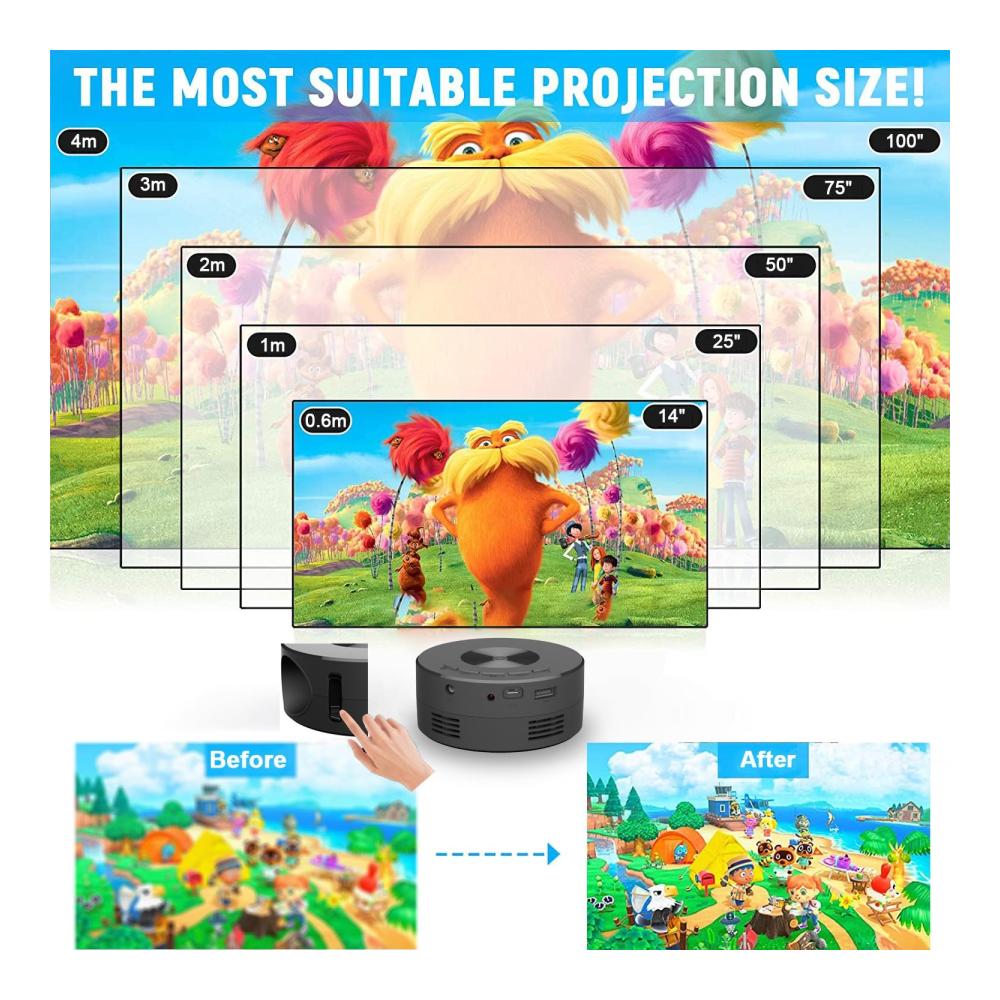 OPTIMALE OPTIK: Erleben Sie dank neuer optischer Kalibrierung und professioneller optischer Linse kristallklare und sichtbare Bilder mit dem handtellergroßen Projektor. Verabschieden Sie sich vom Problem der diffusen Fokussierung.