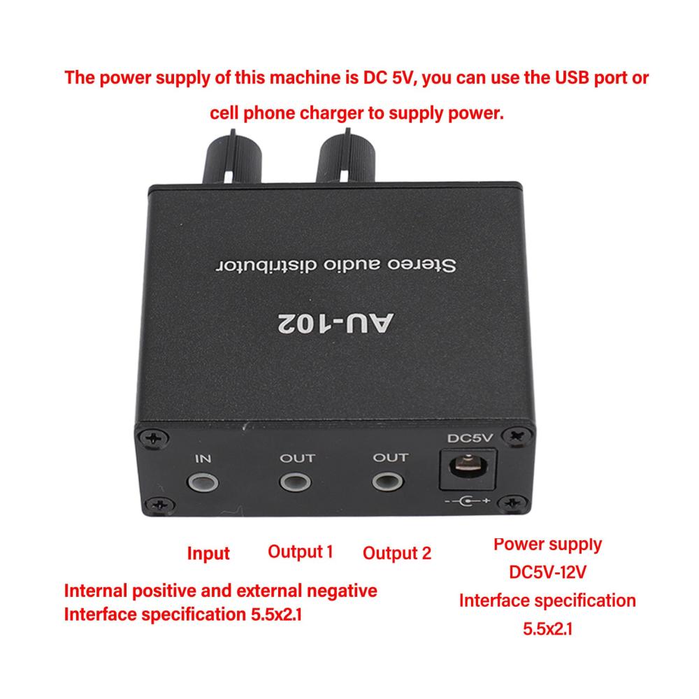 1. ZWEIKANALSIGNAL: Ein Eingang und zwei gleichzeitige Ausgänge, der Ausgang kann an Kopfhörer oder Verstärker und andere Tongeräte angeschlossen werden und die Lautstärke kann unabhängig eingestellt werden, Verstärkung: 3,5 dB, Eingangsimpedanz: 100 K, Ausgangsimpedanz: 16–600 Ω, maximale Ausgangsleistung: 32Ω 500mW.2. AUSGEZEICHNETE AUSGABE: Das Gerät ist mit einer isolierten Boost-Stromversorgung ausgestattet, die 5 V in plus oder minus 9 V umwandelt, um Arbeitsspannung für die internen Schaltkreise bereitzustellen. Obwohl das Netzteil hinsichtlich der Filterung optimiert wurde, empfiehlt es sich dennoch, ein hochwertiges reines Netzteil zu verwenden, um einen klaren und angenehmen Klang ohne Störungen zu gewährleisten.3. EXQUISIT UND PRAKTISCH: Diese Stereo-Sound-Splitterbox ist klein und sieht exquisit aus. Das schwarze Gehäuse macht sie stilvoller und leistungsstärker.4. BREIT KOMPATIBEL: Eingang: DVD, CD, Set-Top-Box, MP3, Fernseher, Mobiltelefon, Computer, Tablet, Mikrofon, Phono-Plattenspieler, Soundkarte, Gitarre, Bass, elektronische Instrumente, Spielekonsole oder andere 3,5-mm-Geräte. Ausgang: Lautsprecher, Subwoofer, Soundbar, Hall, Nachverstärker, Kopfhörer usw.5. HOHE LEISTUNG: Stereo-Umschaltbox bringt keine Verluste, robustes Aluminiumgehäuse mit starker Entstörung und langer Lebensdauer.Spezifikation:Artikeltyp: Stereo-Sound-VerstärkerProduktmaterial: Aluminium LegierungFarbe: SchwarzEin- und Ausgang: 3,5 mmVersorgungsspannung: DC5VStatischer Arbeitsstrom: 100 mAVerstärkung: 3,5 dBEingangsimpedanz: 100 KAusgangsimpedanz: 16–600 Ω, maximale Ausgangsleistung 32 Ω/500 mWGröße: ca. 6,5 x 5,5 x 2,5 cm / 2,6 x 2,2 x 1,0 Zoll Paketliste:1 x Stereo-Soundverteiler1 x USB-NetzkabelHinweis :Alle Daten werden manuell gemessen und es gibt bestimmte Fehler in den Messergebnissen.
