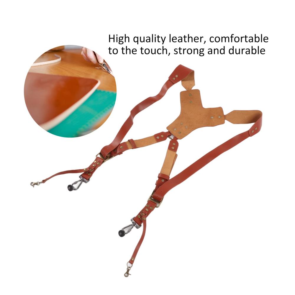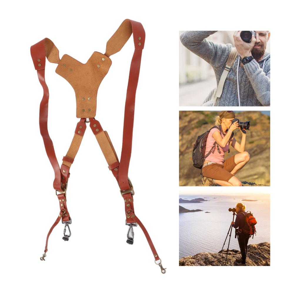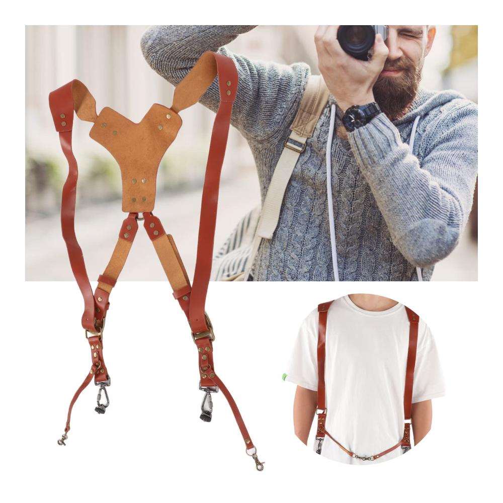 Praktisch und praktisch: Mit diesem Doppelschulter-Kameragurt aus Leder können Sie zwei Kameras gleichzeitig tragen und so bequem darauf zugreifen, um schnell Aufnahmen zu machen. Die Riemen-Spiegelreflexkamera optimiert Ihre Ausrüstung und stellt sicher, dass Sie immer für den perfekten Moment bereit sind.