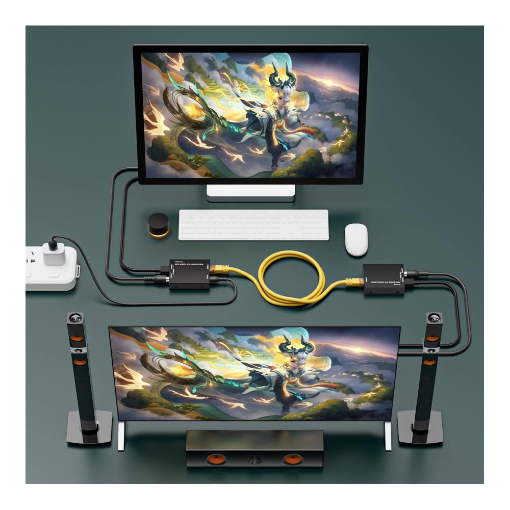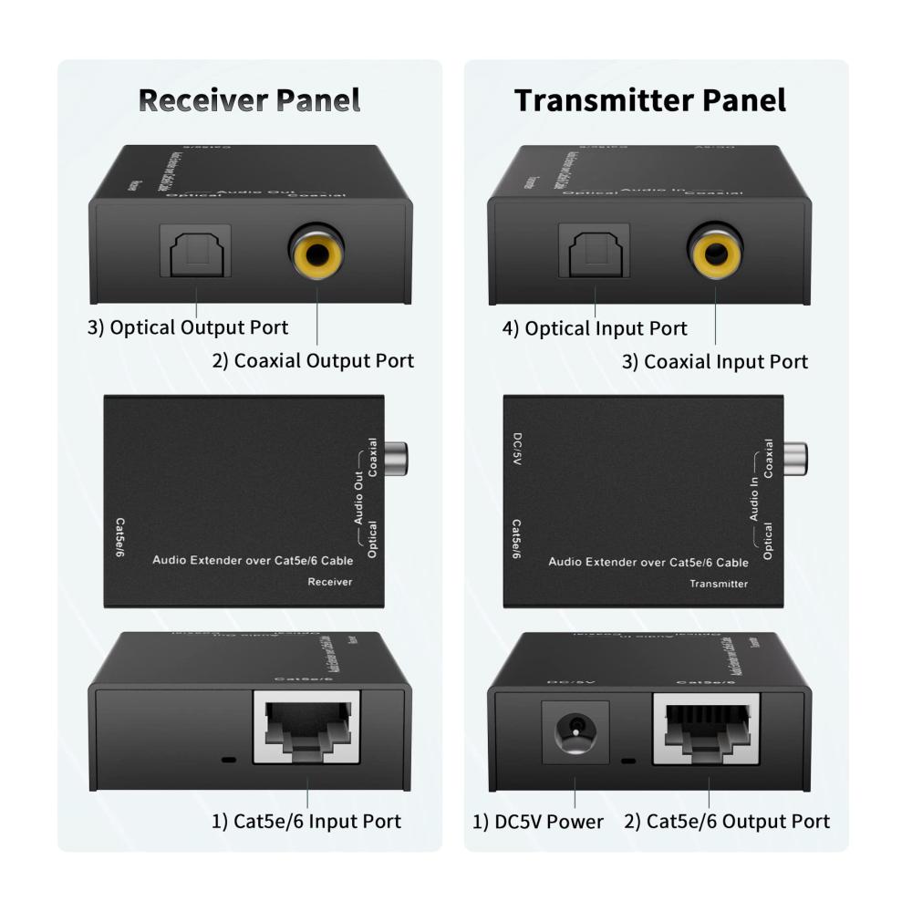 Übertragen Sie Ihren Dolby 5.1 oder DTS Surround Sound Audio über Cat5/Cat6-Kabel für ferngesteuerte Einstellungen ohne Signalverlust, und erleben Sie eine digitale S/PDIF-Audio-Abtastrate von 96 kHz für ein erstklassiges Klangerlebnis.