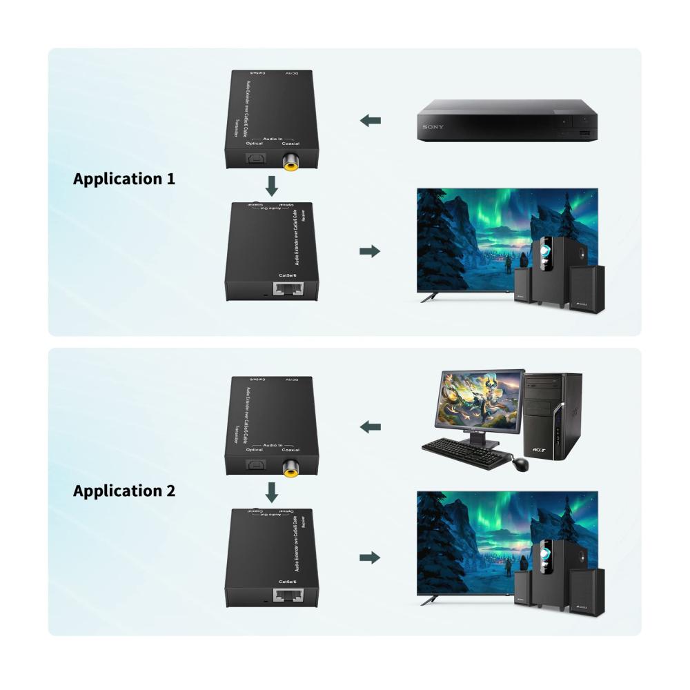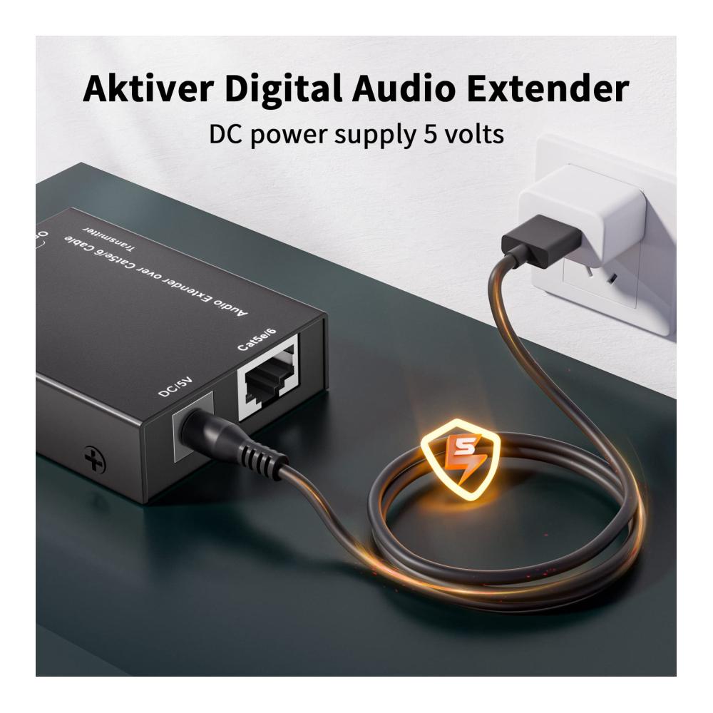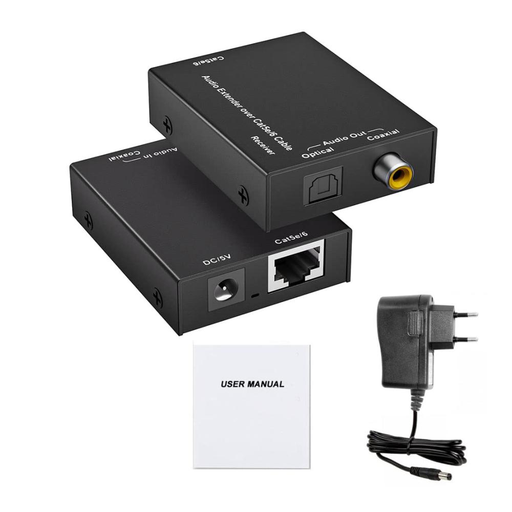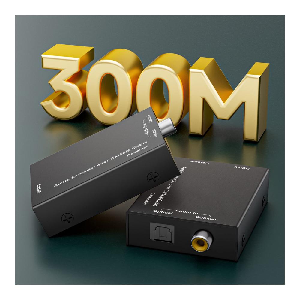 Erweitern Sie Ihre Audio-Reichweite mit dem Aktiven Digital Audio Extender Digitaler SPDIF zum Koaxial Toslink Audio Adapter über Cat6/5e-Kabel bis zu 300M(990FT).