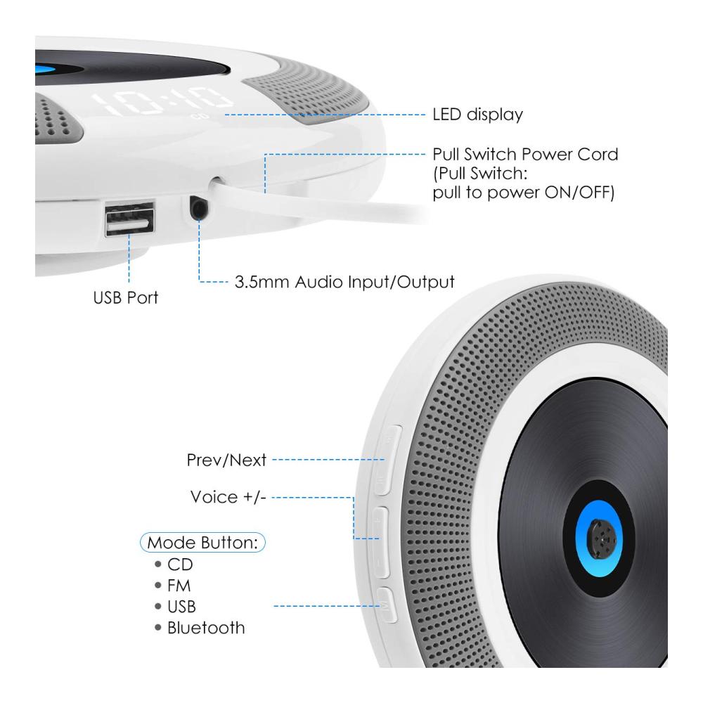 Entdecken Sie den vielseitigen Tragbarer CD Player von VIFLYKOO! Mit seinen zahlreichen Funktionen bietet er ein unvergleichliches Musikerlebnis. Ob als CD-Player, Bluetooth-Lautsprecher oder U-Disk-Player – dieses Gerät begeistert mit seiner starken Kompatibilität. Das kreative Design ermöglicht flexible Nutzungsmöglichkeiten, ob an der Wand montiert oder aufgestellt. Dank des eingebauten Bluetooth-Empfängers können Sie ihn mühelos mit Ihrem Smartphone oder Tablet verbinden. Ein ideales Geschenk für Musikliebhaber und Lernende!
