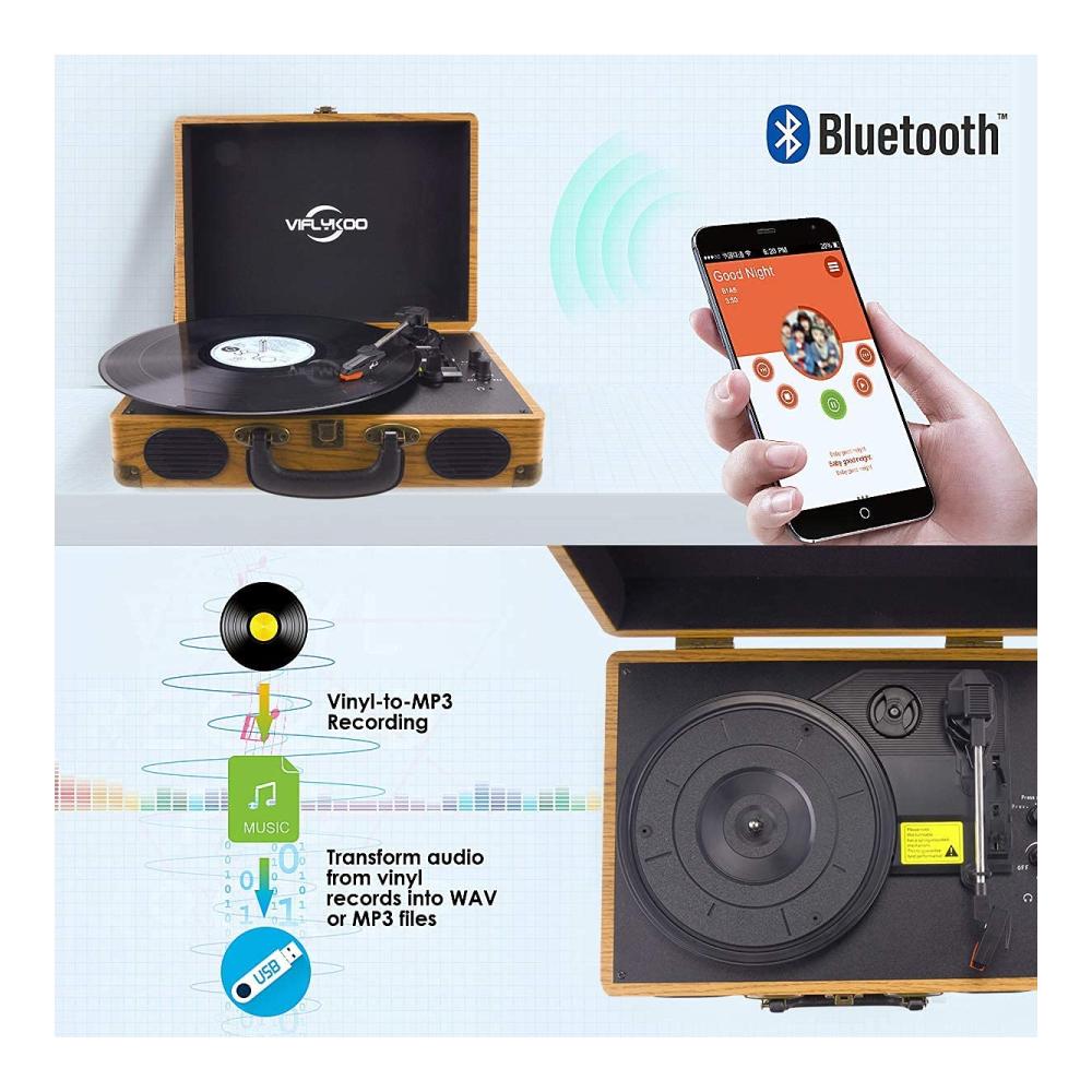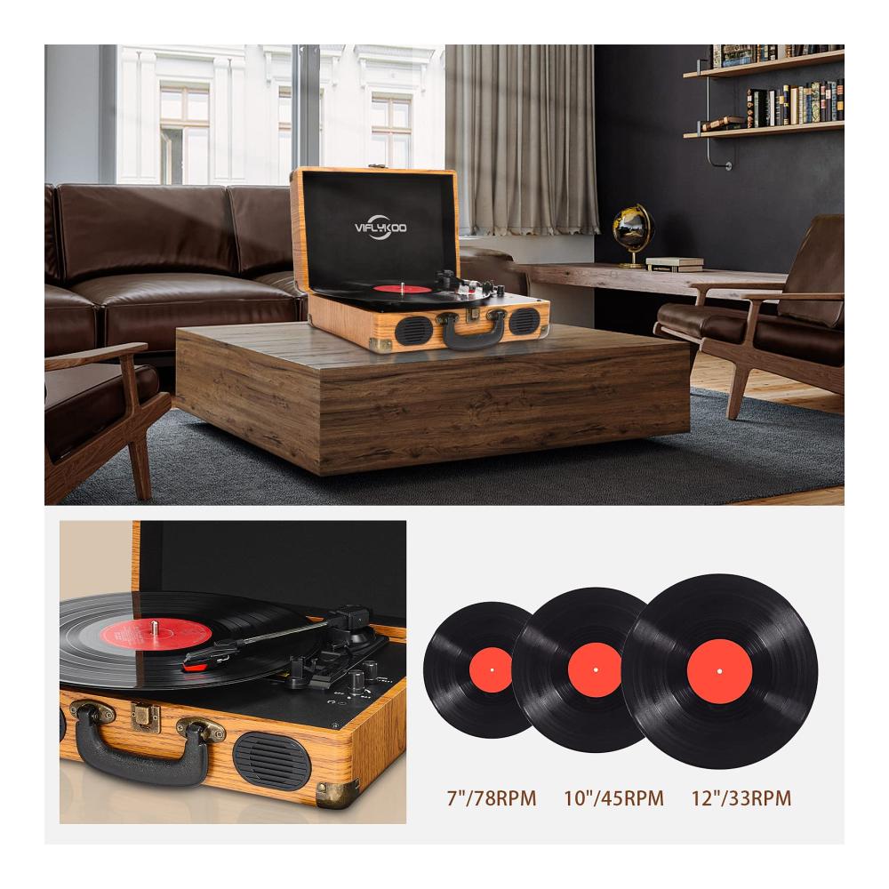 VIFLYKOO Plattenspieler, Schallplattenspieler Bluetooth mit 2 Stereo-Lautsprecher, Wireless 3-Gan...VIFLYKOO Plattenspieler, Schallplattenspieler Bluetooth mit 2 Stereo-Lautsprecher, Wireless 3-Gan...