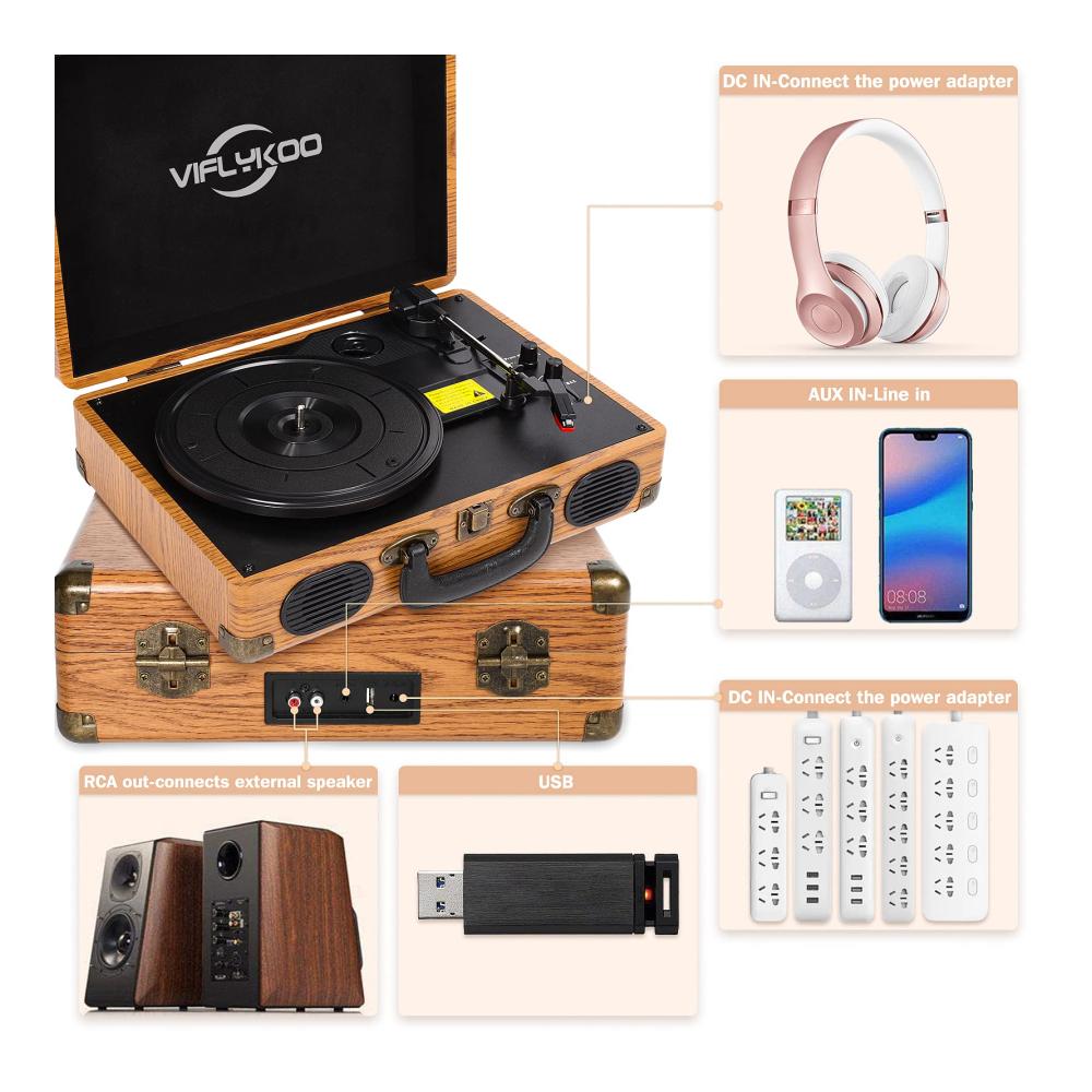 5. VIFLYKOO Plattenspieler, Bluetooth Vinyl Plattenspieler, Schallplattenspieler mit 2 Stereo-Lautsp...VIFLYKOO Plattenspieler, Bluetooth Vinyl Plattenspieler, Schallplattenspieler mit 2 Stereo-Lautsp...