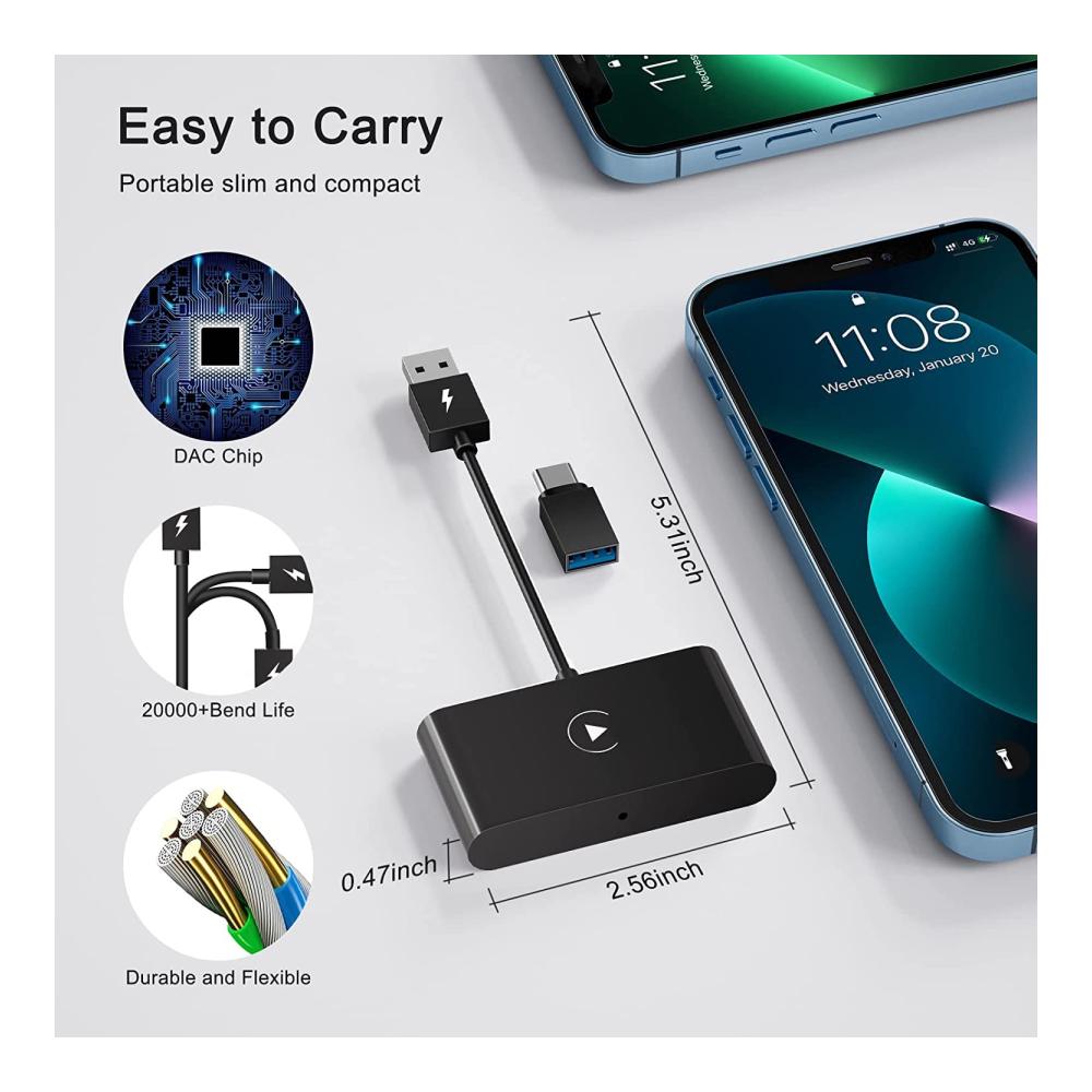 EINFACH ZU INSTALLIEREN: Stecken Sie einfach den USB- oder USB-C-Dongle in Ihren Autoanschluss und dann die Adapter in Ihr iPhone (scrollen Sie nach unten zur Beschreibung für detaillierte Anweisungen). Mit dem integrierten Autodisplay können Sie Abbiegehinweise abrufen, Anrufe tätigen und vieles mehr.