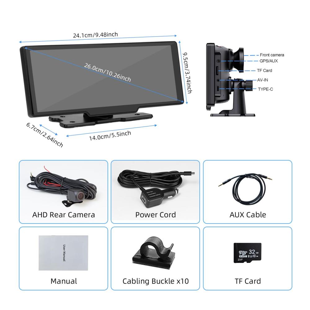 Das tragbare Autoradio mit dem neuen, verbesserten 10,26-Zoll-Großbildschirm, der stabilen Verbindung, der sanften Berührung und der schnellen Reaktion bietet Ihnen mehr Spaß auf Reisen.
