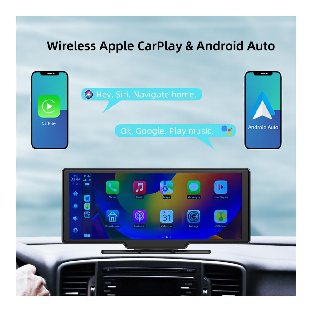 Wireless CarPlay & Android Auto: Sowohl Apple- als auch Android-Telefone können drahtlos über Bluetooth und WIFI mit dem Autoradio verbunden werden, um Navigation, Telefonate, Musikwiedergabe und verschiedene APP-Funktionen auf Ihrem Telefon sowie Siri und Google für die Sprachsteuerung zu nutzen, damit Sie sicher unterwegs sind.