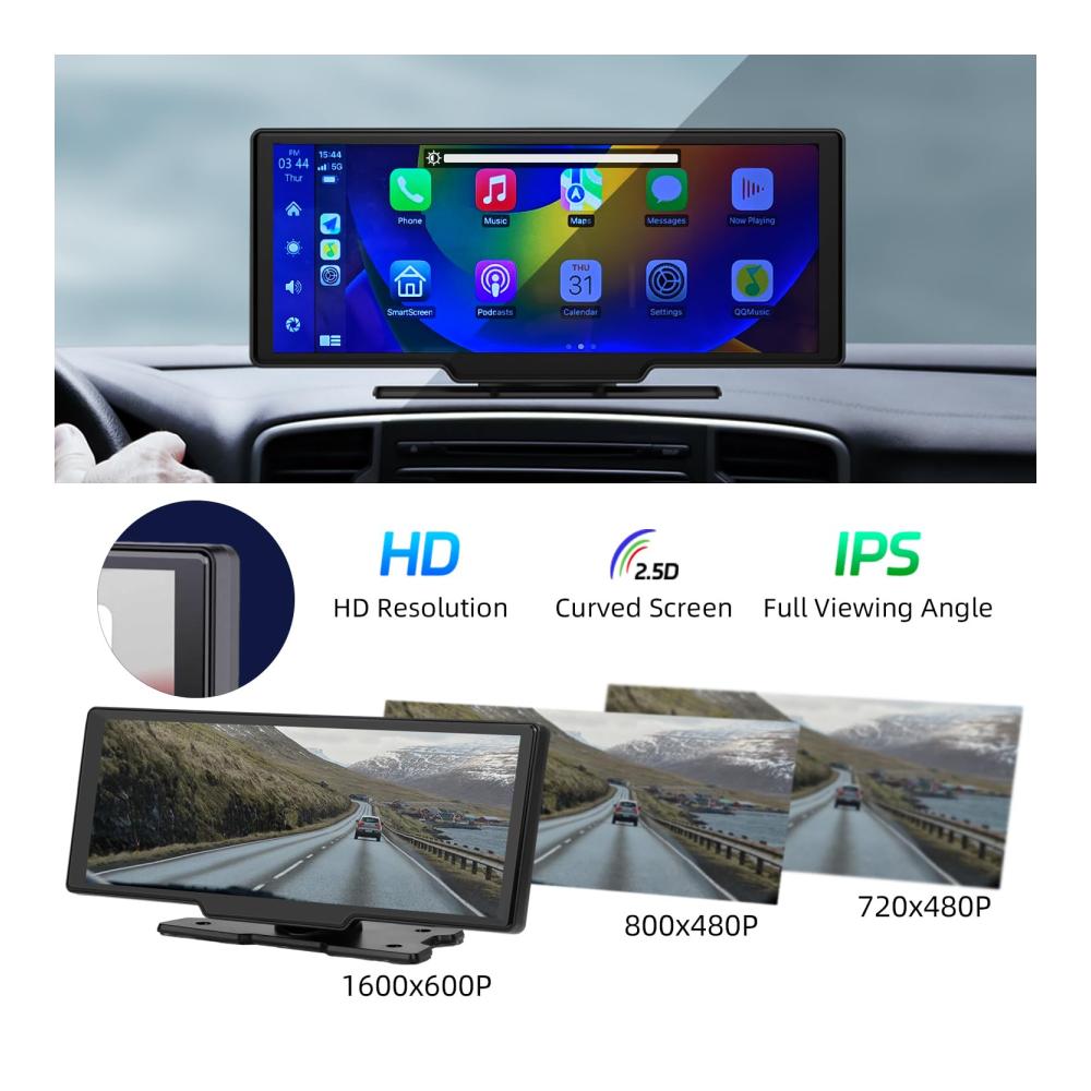 10,26-Zoll-Touchscreen: 1600 x 600 HD IPS-Bildschirm, 2.5D glatte und nicht verzögerte Vollbild-Touch-Erfahrung, unterstützt Split-Screen-Modus, so dass Sie die vorderen und hinteren Bilder des Autos zu beobachten, während die Navigation oder Musik hören, so dass das Fahren angenehm und sicher.