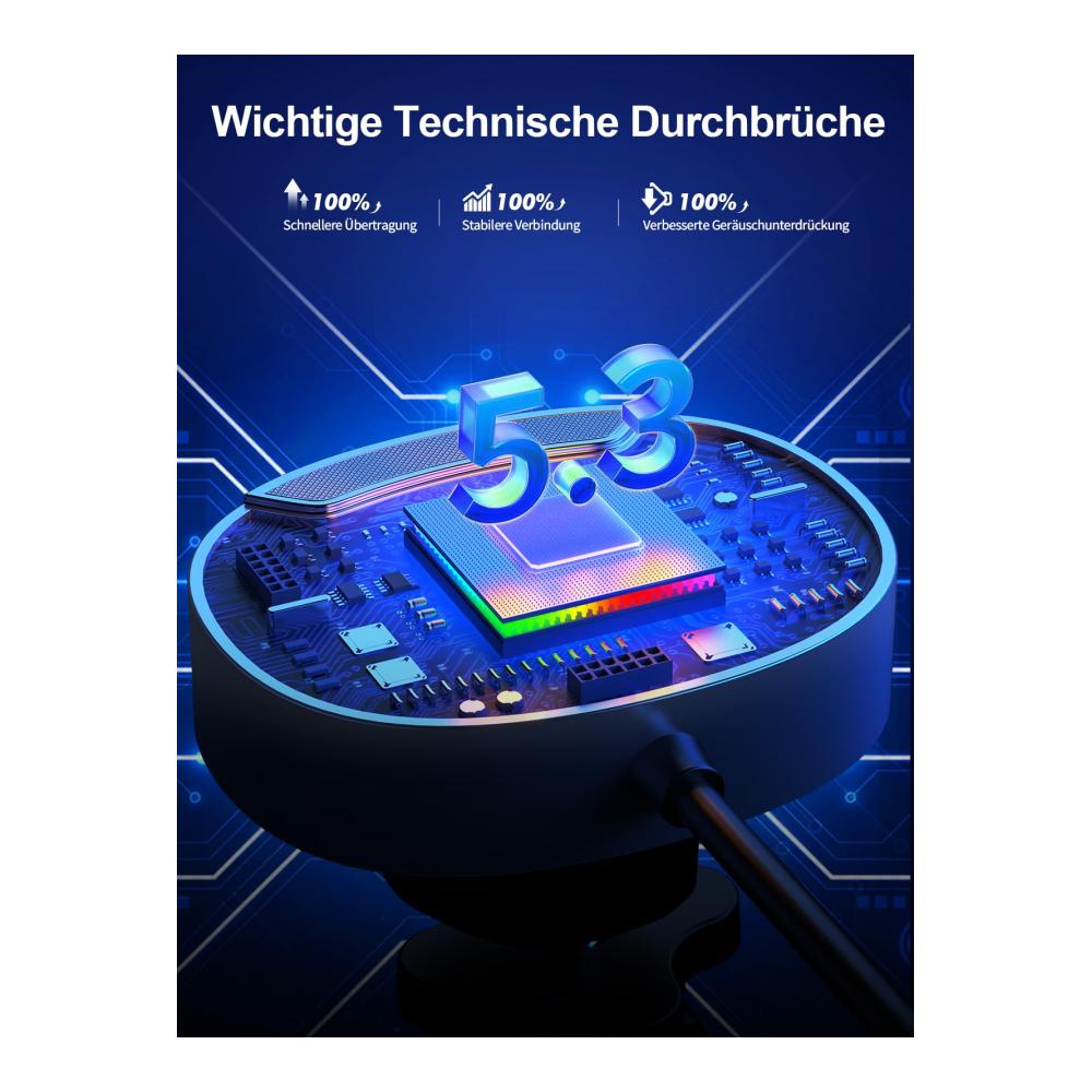 Ultimative Klangqualität In-Ear-Ohrhörer & Kopfhörer Kabellos Bluetooth 5.3 – Kabellose Kopfhörer für klare HD-Anrufe 50H Akkulaufzeit Deep Bass LED-Anzeige & IPX7 wasserdicht