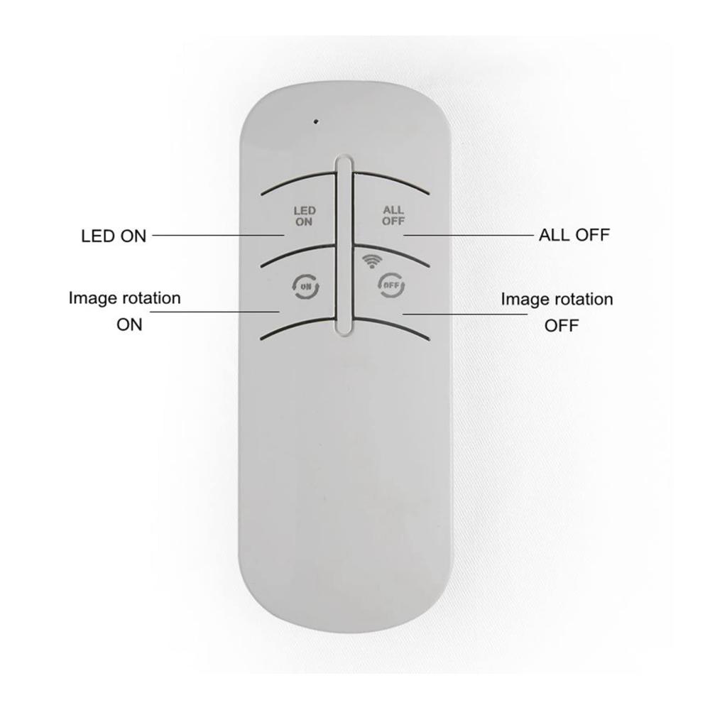 &34;Fernbedienung&34;: Ausgestattet mit einer Fernbedienung, die den Stand-/Rotationsmodus für attraktive Projektionen einstellt. Ob der Projektor an der Decke, an der Wand oder im Freien montiert ist, das Ein- und Ausschalten der Lampe lässt sich einfach steuern. .