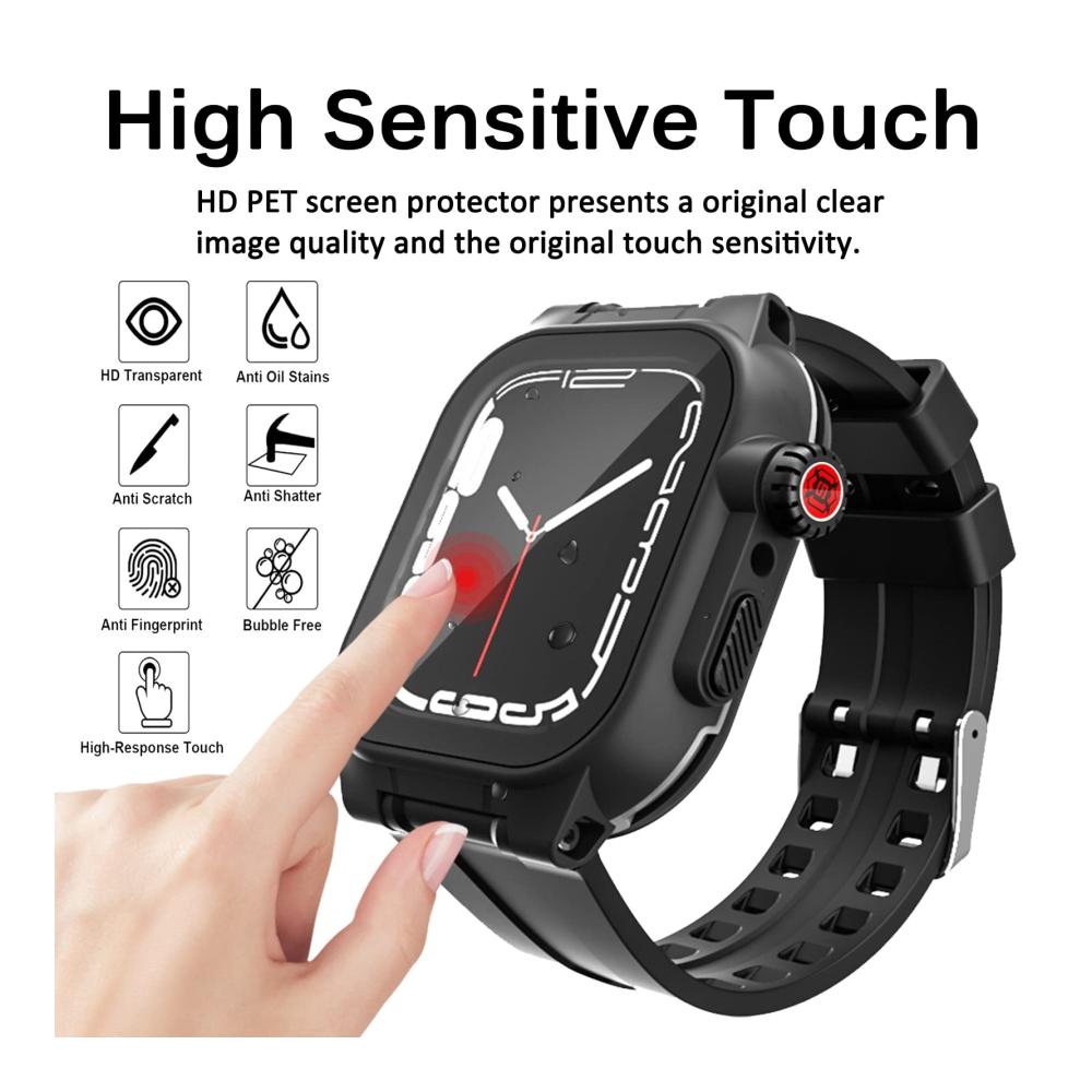 [Eingebaut Displayschutzfolie] Dieses apple watch 9 Wasserdicht hülle 41mm verfügt über einen eingebauten flexiblen FET Displayschutz, mit 99% hoher Transparenz und hoher Berührungsempfindlichkeit, schützt Ihren Bildschirm vor Kratzern und Stürzen und bietet Ihnen ein originelles ausgezeichnetes Nutzungserlebnis.