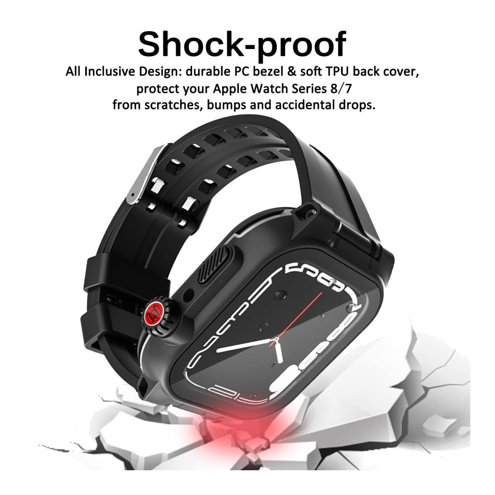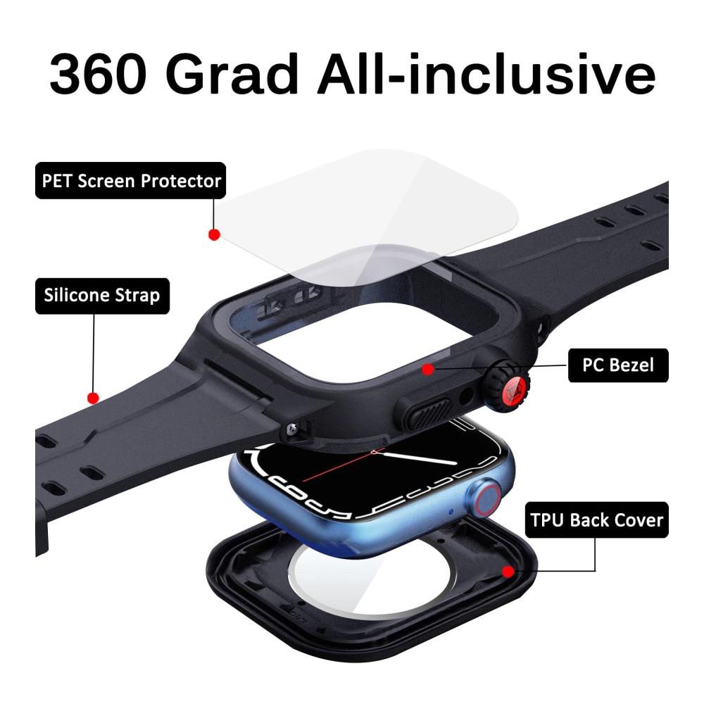 [3 in 1 Design] Dieses Produkt verfügt über 3 in 1 Design: ein Schutzhülle einschließlich vorderer und hinterer Abdeckung, ein Displayschutzfolie und ein Uhrenarmband. Es kann echten vollen Schutz für Ihre iwatch 9/8/7 erreichen. Praktischer und praktischer.