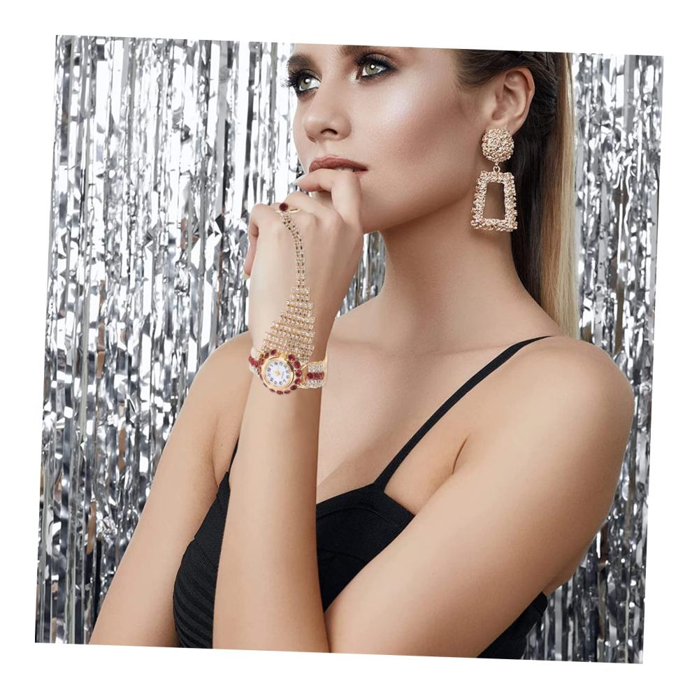 Paketliste 1 x Ring-ArmbanduhrEigenschaften -Größe: ca. 10,00 x 6,00 x 2,00 cm/3,93 x 2,36 x 0,79 Zoll Strass-Ring-Armbanduhr.-Material: Strasssteine, Kupfer, Quarz, Glas Damenarmbanduhr.– einzigartig und zart, was Sie in der Masse der Diamant-Armbanduhr attraktiver und beeindruckender macht.– elegantes und Vintage-Design macht Sie charmant, entworfen mit glänzendem Strass-Strass-Armreif.– bequem und langlebig zu tragen, passt gut zu vielen Arten von Kleidungsstilen, Armband, Uhr, Ring.– mit feiner Verarbeitung und filigranem Design ist es ein perfektes Accessoire für Ihr Diamantring-Armband.– nicht nur ein Armbandring, sondern kann auch eine Uhr sein, um Ihnen eine genaue Zeitarmbanduhr zu bieten.Warenbeschreibung Ringarmband mit Strasssteinen Bei diesem Artikel handelt es sich um eine exquisite und elegante Uhr im Armbandstil mit Ringverbindung, sehr persönlich und charmant. Damenarmband voller Vintage- und Ethno-Stil, schönes Geschenk für Ihre Freunde. Armreifuhr mit Strasssteinen Die robuste Armbanduhr passt zu den meisten Kleidungsstücken, ist bequem und einfach zu tragen und eignet sich hervorragend für die meisten Gelegenheiten