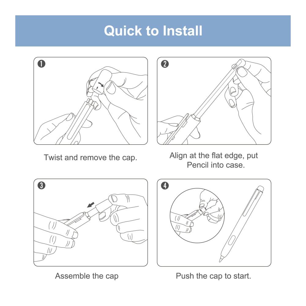 • Einfache Bedienung – Aus hochwertigem PC Material ist das Stift-Case einfach zu installieren und zu entfernen. Aber mit Case wird das Aufladen und Koppeln beeinflusst.