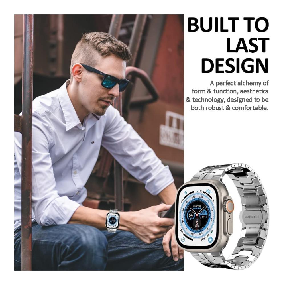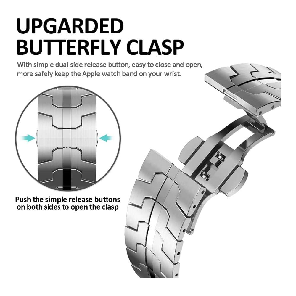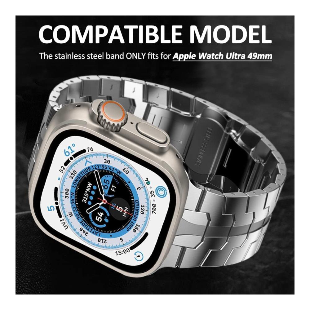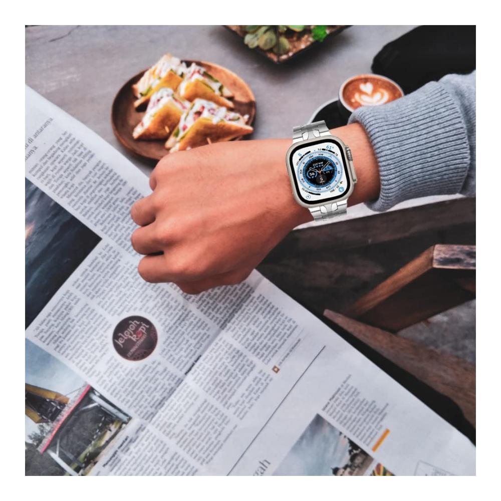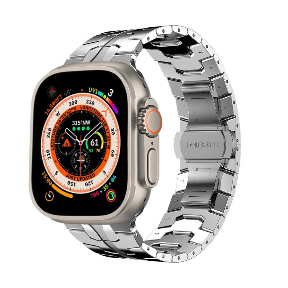 Ersetzbare Armbänder für Apple Watch Ultra/Ultra 2 | Hochwertiges Edelstahl Metall | Doppelte Faltschließe | Verstellbares Armbänder | Silber