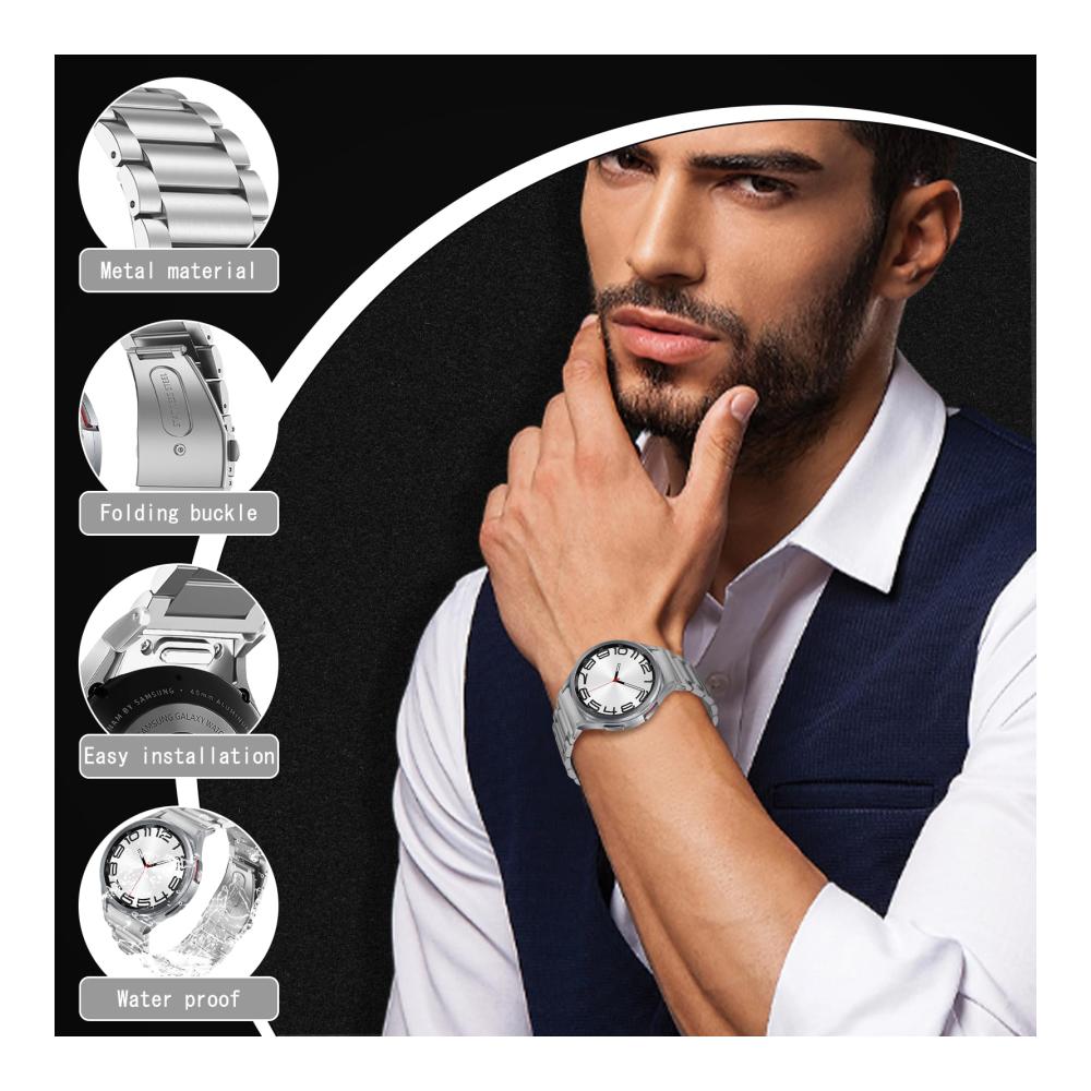 KoGiio Uhrenarmband, -für Samsung Galaxy Watch 6 Classic 43mm -für Samsung Galaxy Watch 6 Classic 47mm -für Samsung Galaxy Watch 6 40mm -für Samsung Galaxy Watch 6 44mm-für Samsung Galaxy Watch 4 (40mm/44mm)-für Samsung Galaxy Watch 4 Classic (42mm/46mm) -für Samsung Galaxy Watch 5 (40mm/44mm)-für Samsung Galaxy Watch 5 Pro 45mm [Funktion und Eigenschaften]Verwenden Sie einfach Ihre Hände, um das Band ohne Werkzeug zu installieren, sehr einfach. [Paket enthalten] 1 x uhrenarmband edelstahl 1 x demontagewerkzeug 1 x bedienungsanleitung