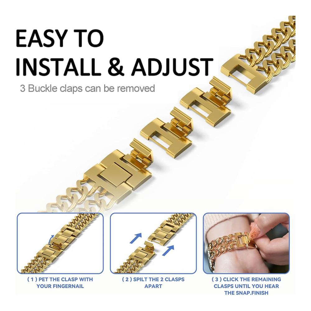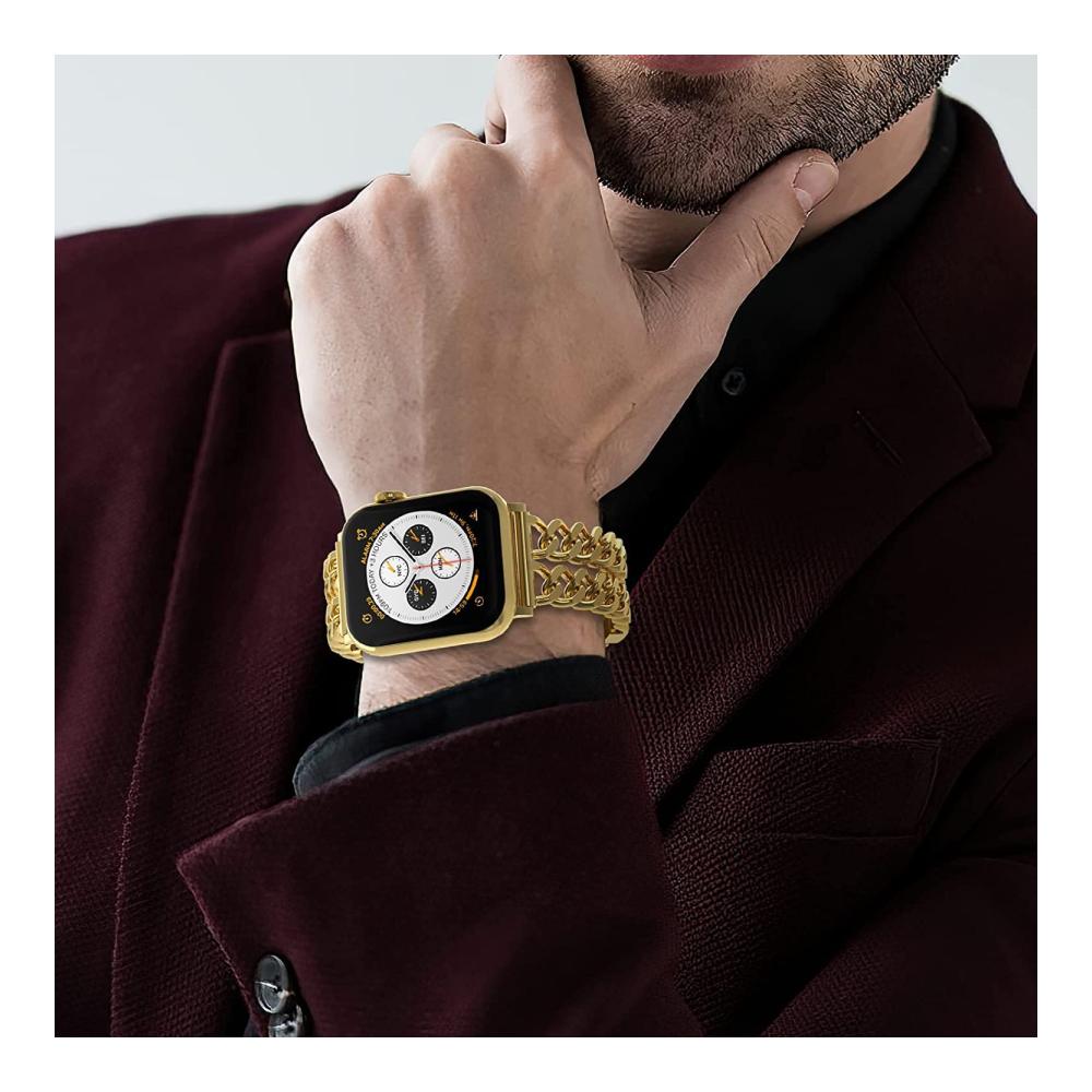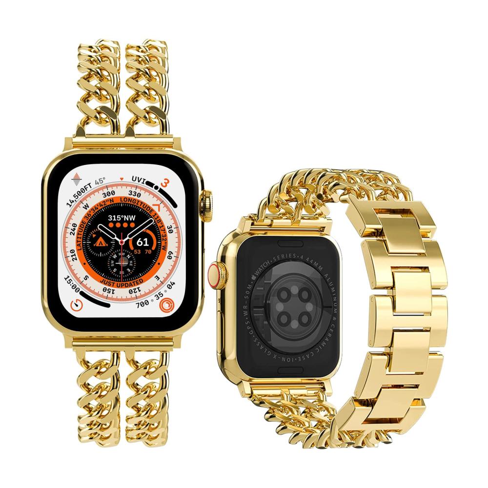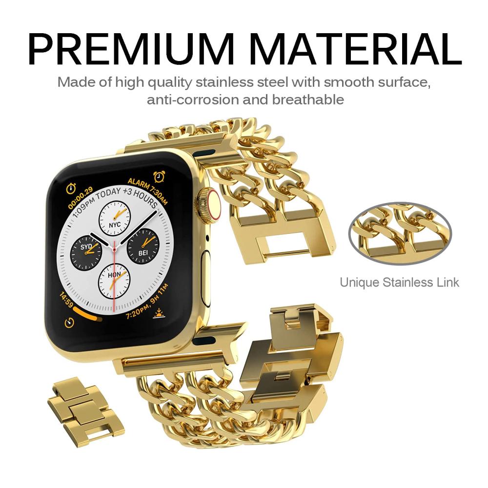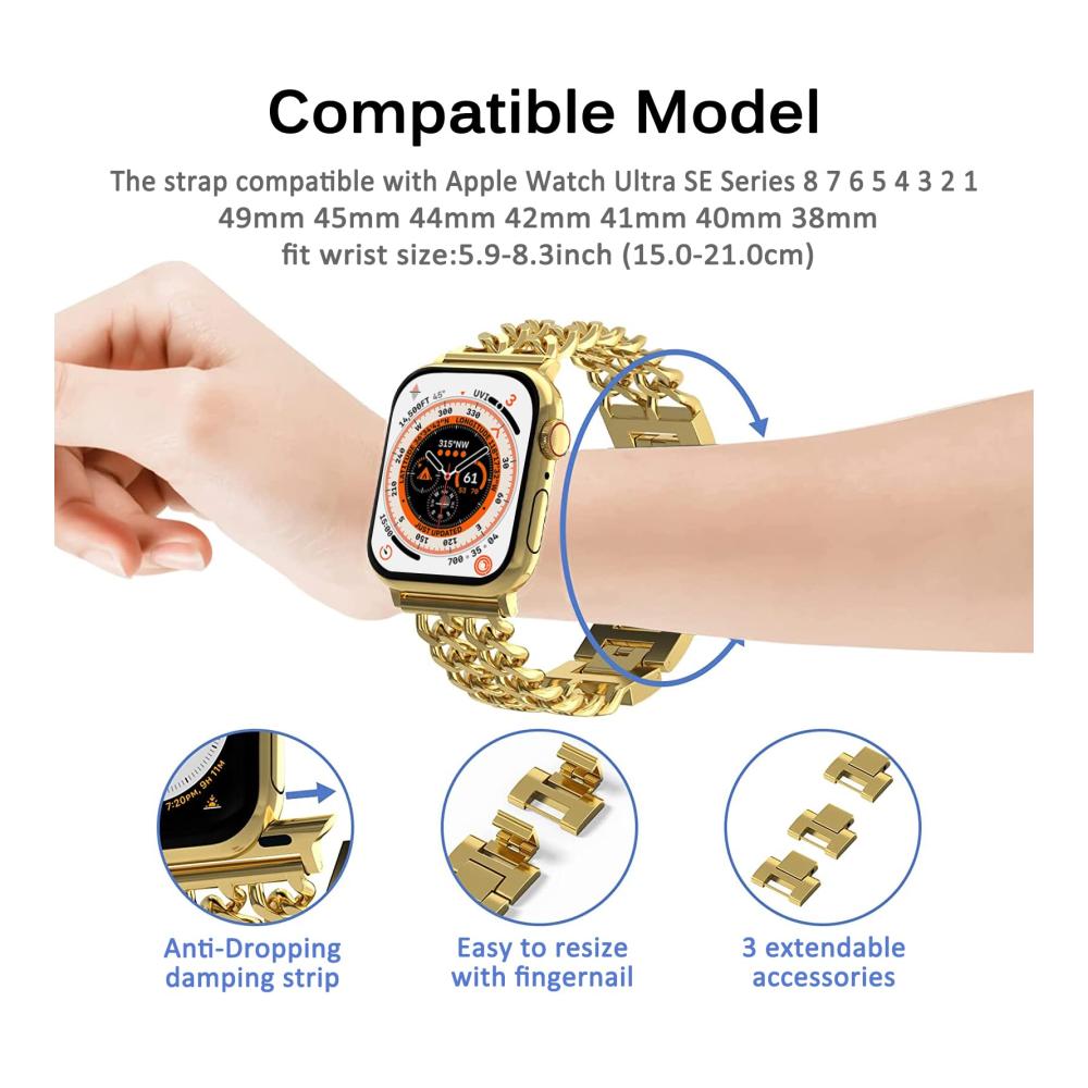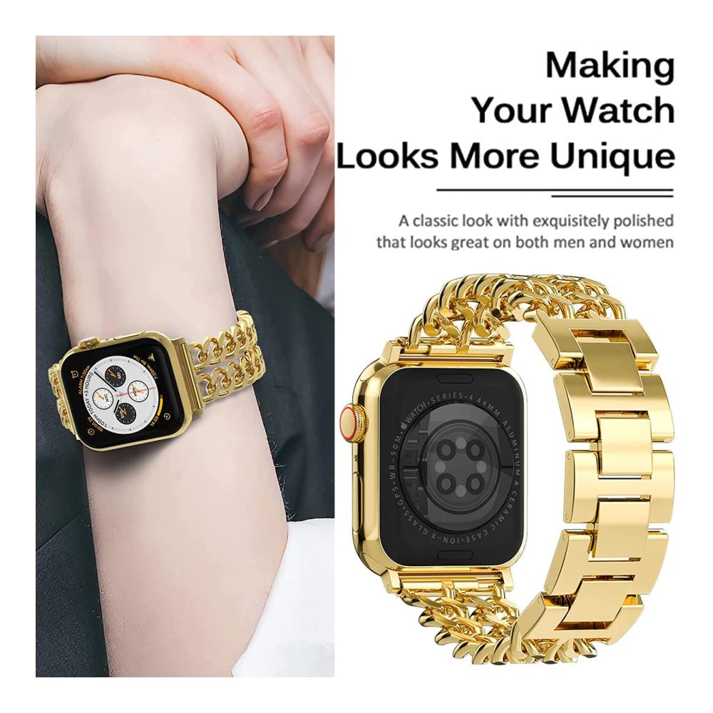 Erleben Sie das vielseitige Miimall Metallband für Ihre Apple Watch. Kompatibel mit Modellen der Apple Watch Series 9/8/7/6/5/4/3/2/1/SE2/SE in 38mm, 40mm und 41mm. Das Armband besteht aus hochwertiger Zinklegierung und ist wasserdicht sowie komfortabel. Sein skelettiertes Doppelketten-Design verleiht Ihrer Uhr einen einzigartigen Glanz. Dank des mitgelieferten Werkzeugs ist eine einfache Anpassung der Größe möglich. Inklusive schnellem Kundenservice.