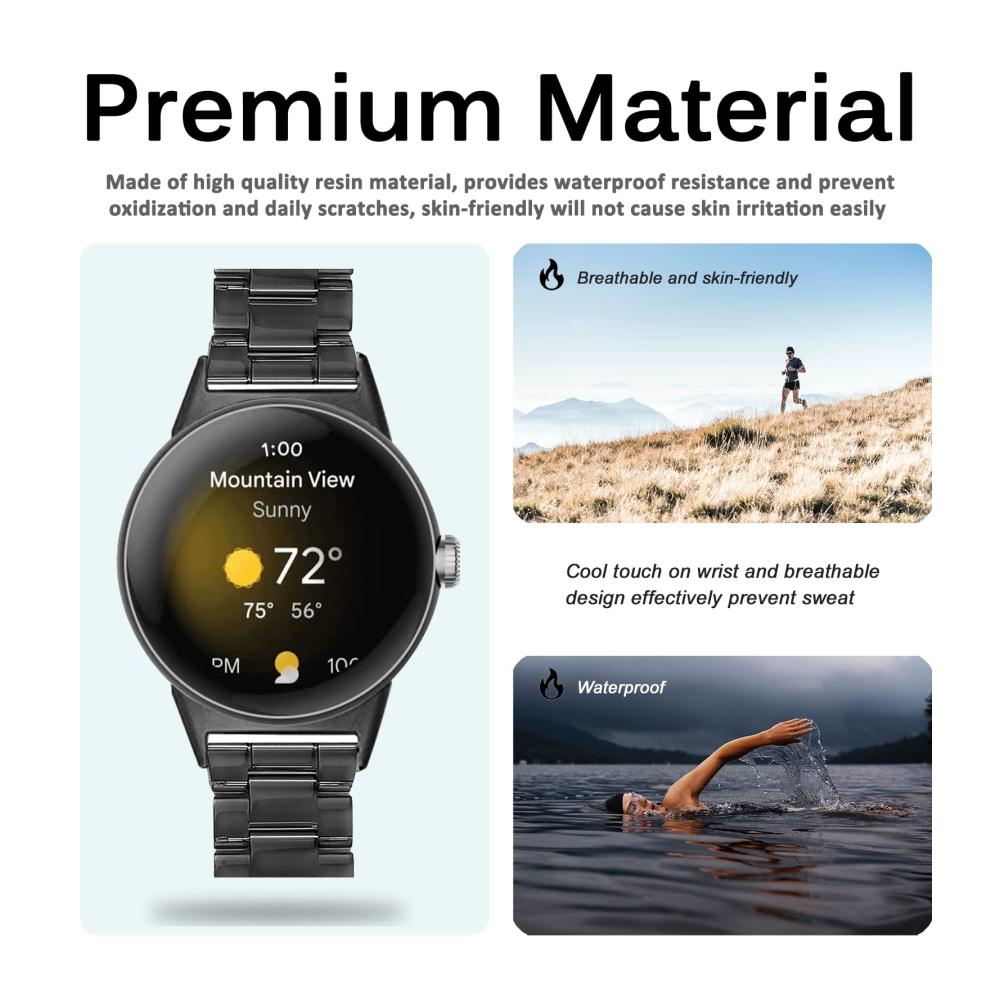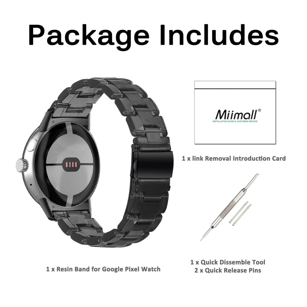 Miimall Harzarmband kompatibel mit Google Pixel Watch, wasserdicht, leicht, mit Edelstahl-Schnalle, Armband für Google Pixel Watch Material: Armband aus Kunstharz und Schnalle aus Edelstahl. Spezielles Design: Armband-Design, flexibel, leicht, modisch, einheitliche Größe, geeignet für die meisten Menschen. Kompatibilität: Fit Google Pixel Watch Paket beinhaltet: 1 x Armband für Google Pixel Uhr. 1 x Schnellzerlegungswerkzeug. 2 Schnellspannstifte. 1 Einführungskarte zum Entfernen von Gliedern.