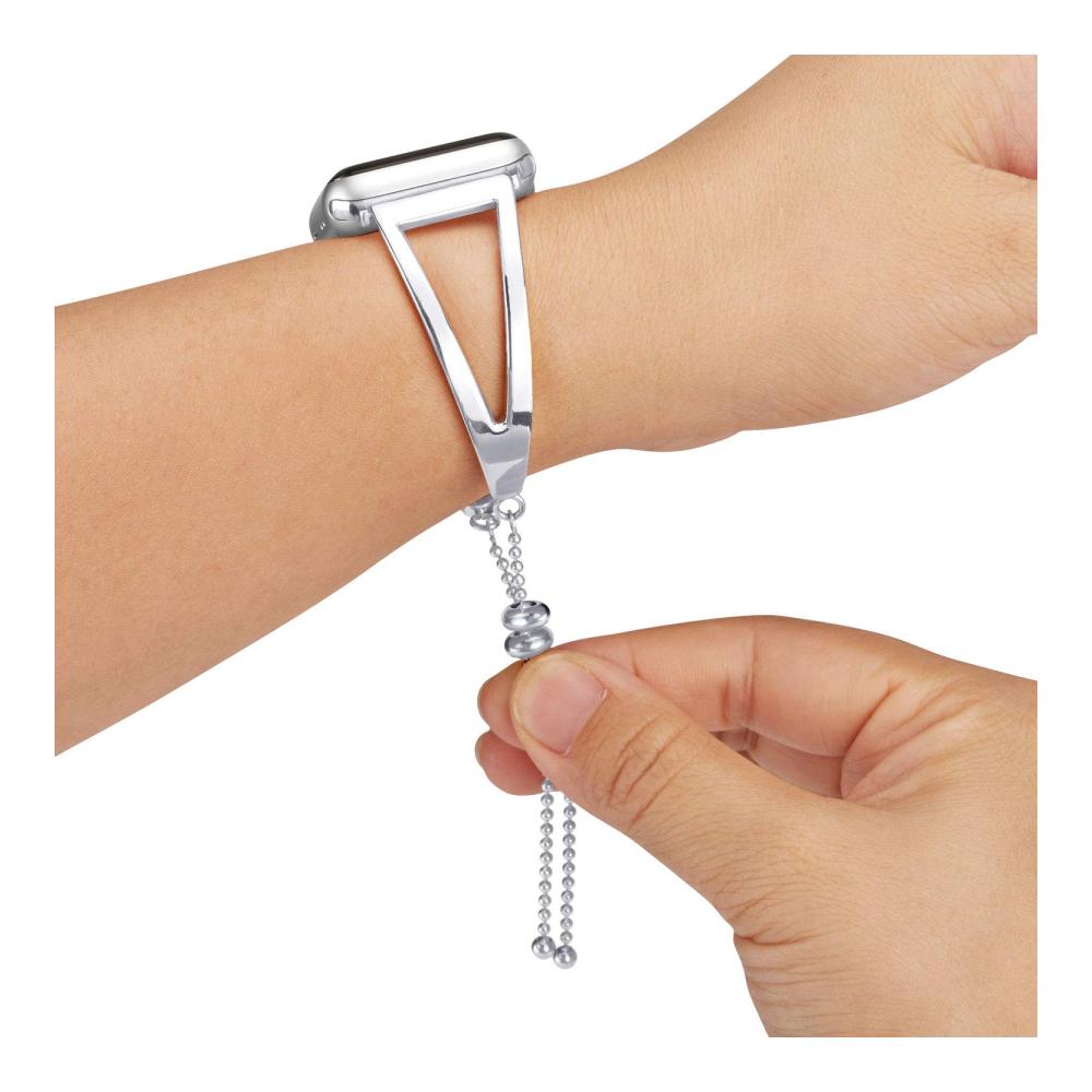 Einzigartiges Design – Die Watch Edelstahlbänder wurden mit zwei Verschlusskugeln an der Schmuckkette Anhänger und Quaste entworfen. Diese stilvolle Watch-Band ist perfekt für Mädchen und Frauen. Das Watch band ist perfekt für die meisten Anlässe wie Arbeiten, Einkaufen, Datum usw.