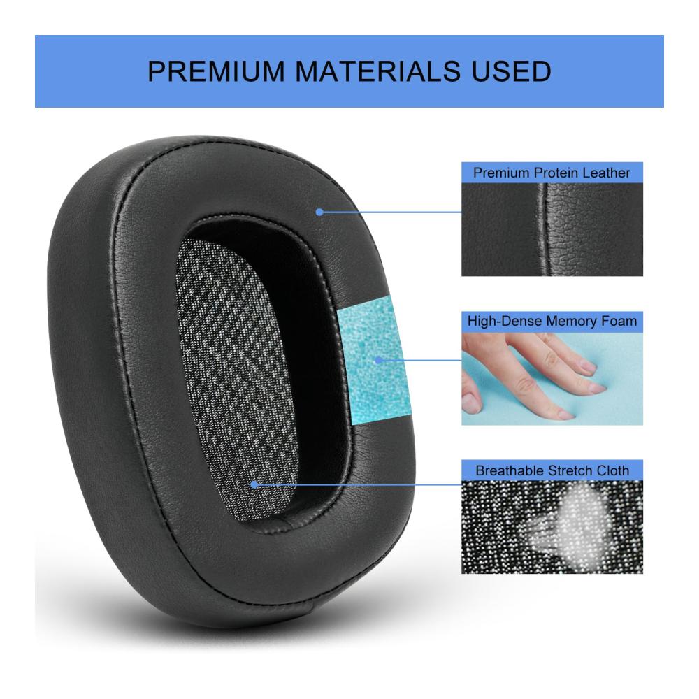 Ersetzen Sie Ihre abgenutzten Ohrpolster für Logitech G933, G935, G633 mit Premium Eiweiß Leder Weicher Memory Foam (Leder). Diese Ohrpolster sind aus hochwertigem Protein-Leder gefertigt und bieten ein angenehmes Tragegefühl. Sie sind einfach zu installieren und bieten eine perfekte Passform. Kompatibel mit einer Vielzahl von Logitech-Modellen.