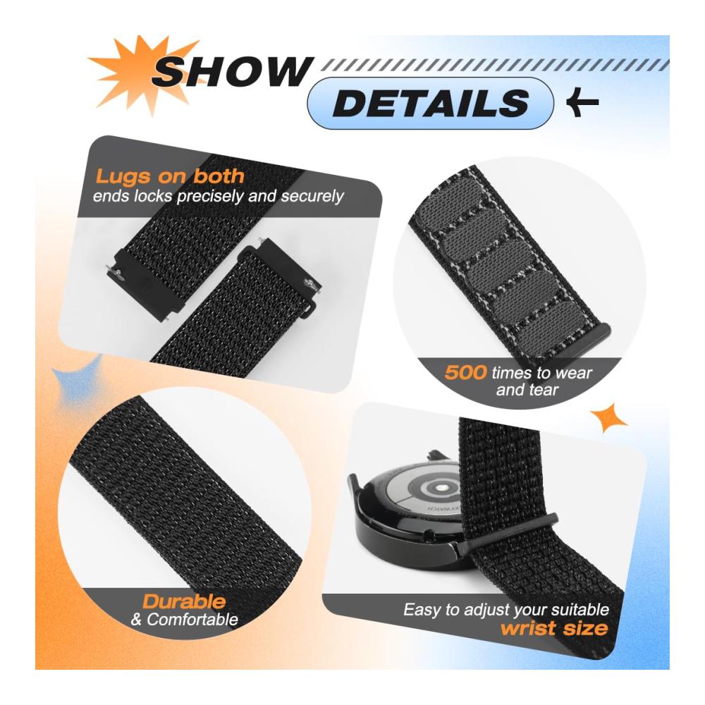 Ersetzen Sie Ihre alten Uhrenarmbänder mit Leichtigkeit! Das KIBDSNG 22mm Nylon Sport Uhrenarmband ist kompatibel mit einer Vielzahl von Modellen, darunter Samsung Galaxy Watch 3 45mm, Galaxy Watch 46mm, Gear S3 Classic/Frontier und Huawei Watch GT/GT2 46mm/GT2 Pro. Hergestellt aus hochwertigem, atmungsaktivem Nylon, bietet es ultimativen Komfort und Stil. Das anpassbare Armband passt für Handgelenke von 160 mm bis 210 mm und ist perfekt für Sport und Outdoor-Aktivitäten. Die einfache Installation ohne zusätzliche Werkzeuge macht es zum idealen Ersatzarmband. Mit einer 12-monatigen Garantie können Sie beruhigt sein.