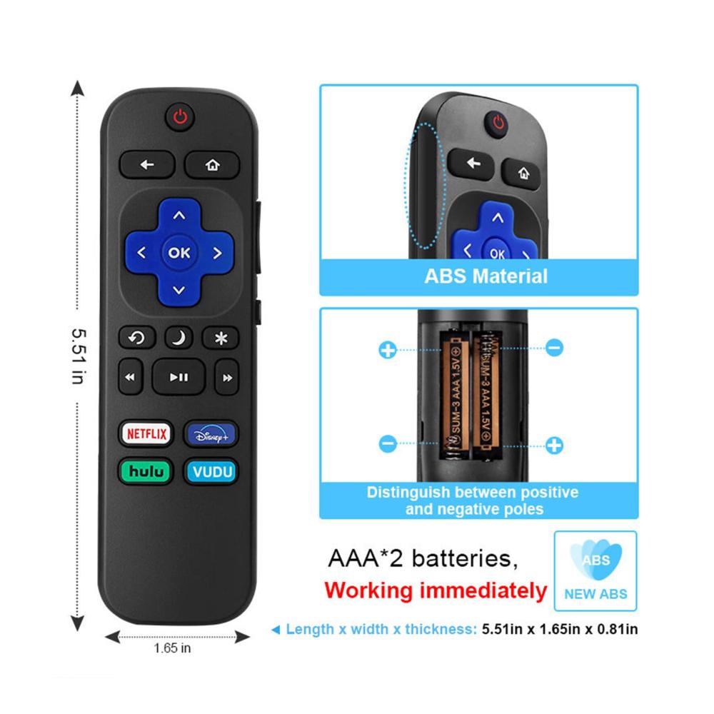Besonderheiten: Kompatibel mit Hisense / TCL / Sharp / RCA / JVC / Westinghouse / Sanyo / Eement Smart-TVs. Shortcut-Tasten für Netflix/Disney /Hulu/VUDU für zusätzlichen Komfort. Es verfügt über Lautstärke- und Stummschaltungstasten an der Seite, um Ihren Fernseher zu steuern. Benötigt zwei 1. 5 V AAA-Batterien (Batterien sind nicht im Lieferumfang enthalten). Perfekt, um Ihre alte oder kaputte zu ersetzen. Produktmerkmale: Farbe: Schwarz. Material: ABS Batterie: 2 x AAA-Batterien (nicht im Lieferumfang enthalten). Lieferumfang: 1 x TV-Fernbedienung