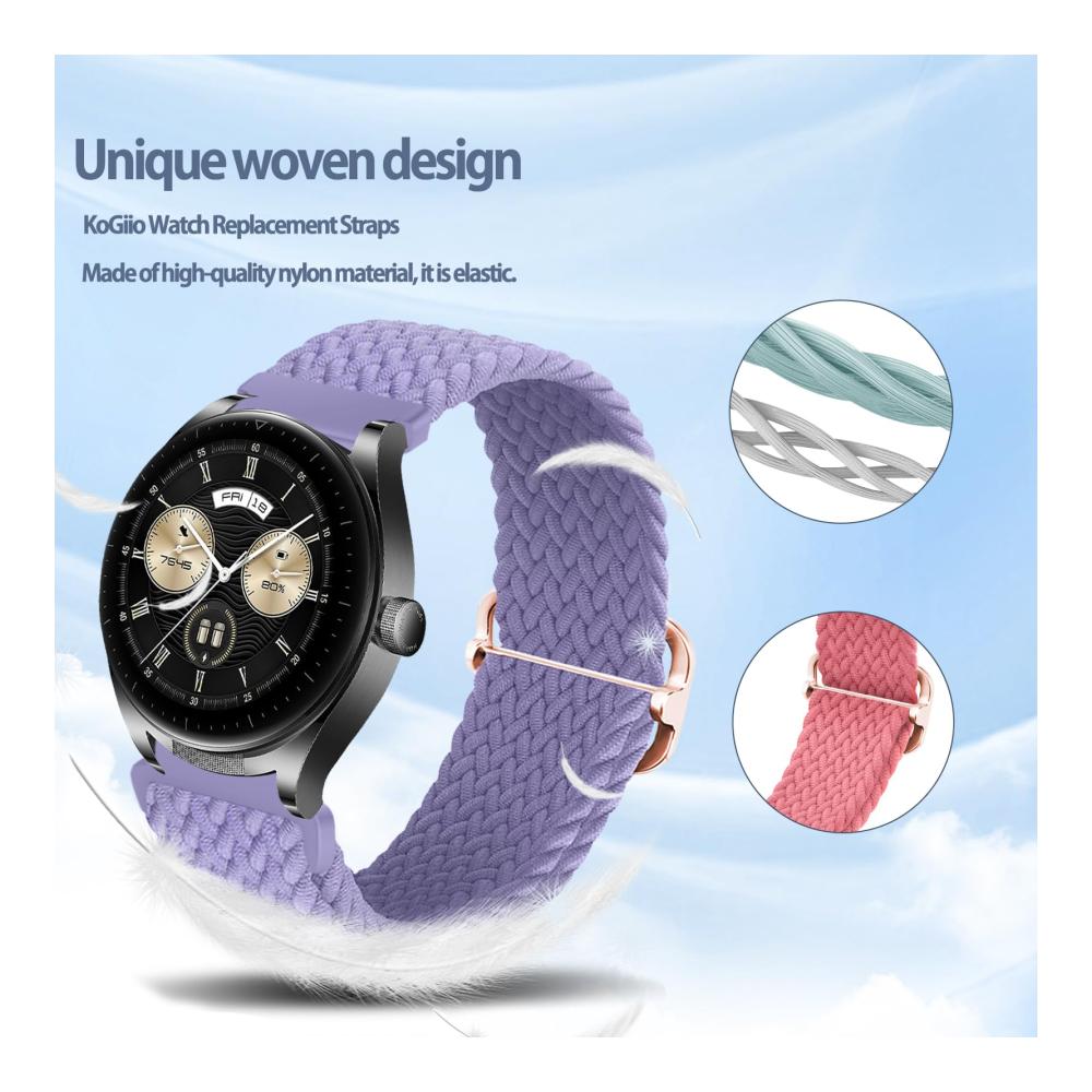 Bringen Sie Farbe an Ihr Handgelenk mit diesen hochkompatiblen 22mm Armbändern! Passend für eine Vielzahl von Modellen, von Huawei Watch GT 4 bis Samsung Galaxy Watch. Das elastische Nylonmaterial ist angenehm zu tragen und verformt sich nicht. Einfach einstellbare Größe ohne Werkzeug. Personalisieren Sie Ihre Uhr und machen Sie sie zu einem Blickfang! Erfreuen Sie sich an diesem 2er-Set in Rosa & Lila und heben Sie sich ab