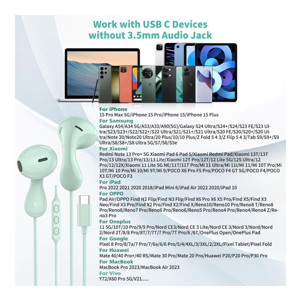 USB C Headset für iPhone 15 Pro 15 Pro Max 5G/15/15 plus/iPad Pro/Air/Mini/MacBook Pro 2021/2020,XPS 13 15,Samsung Galaxy S24/S24 Ultra/S24 /S23/S23 Ultra/S23 /S23 FE/S22/S22 Ultra/S21 FE/S21 Ultra/S20 FE/Note 20/S10,Galaxy Z Flip/Fold5 4/3/2,A54/A33/A53/A34/M54,Redmi Note 13 Pro 5G/Xiaomi 14 Ultra 13T/13T Pro/13/13 Ultra/12T Pro/12T/12S Ultra/11/POCO X6 Pro,Huawei,Google Pixel 8/8 Pro/7 Pro/7/7a 6a/6 Pro/5,OnePlus 12 11/10T/10 Pro/9/Nord 2 CE 3 2T/8T/8/7T/open&Laptops mit einem USB-C-Anschluss 🎧【Ergonomisches Halbkopfhörer Design】Ultraleichten Kopfhörer Typ C passen sich perfekt an das Ohr an, Auch wenn Sie die Kopfhörer den ganzen Tag tragen, werden sie nicht unangenehm für Ihre Ohren. Das 1,2 Meter lange, robuste Kopfhörerkabel besteht aus einem dickeren, geflochtenen Kabel, das langlebig und abriebfest ist, sich nicht verheddert und robust genug ist, um beim Sport im Freien getragen zu werden. 🎧【High-Fidelity-Stereoklang】ASKUBSKU USB C Kopfhörer mit neuester Chip-Technologie und der digitale Hi-Res und DAC Decoder Chip bietet einen hochwertigen Klang & eine solide Verbindung durch digitale Eingangssignale zur Konvertierung der Standard Musik in ein überlegenes klares Audio, sorgt für eine verlustfreie Klangqualität und ein intensives Hörerlebnis. Ideal für Fitness, Sport, Radfahren, Laufen, Reisen, Freizeit und mehr. 🎧【Bequeme Inline-Steuerung】Mit den Fernbedienungstasten am USB-C-Anschluss-Kopfhörer können Sie Musik abspielen/anhalten und zum vorherigen/nächsten Lied springen, ohne Ihr Handy in die Hand nehmen zu müssen. Sie können die Lautstärke jederzeit und überall ganz einfach regeln. USB-C-Kopfhörer mit Geräuschunterdrückung Mikrofon integriertem zum einfachen Annehmen/Ablehnen von Anrufen im Headset-Modus. 🎧【Inhalt des Pakets】1 Paar USB-C-Kopfhörer, 1 kleiner Clip, 1 praktische Aufbewahrungsbox zum Verstauen und Transportieren von Kopfhörern und anderem Zubehör in einer Box. Genießen Sie erstklassigen Klang mit unseren USB C In-Ear-Ohrhörern