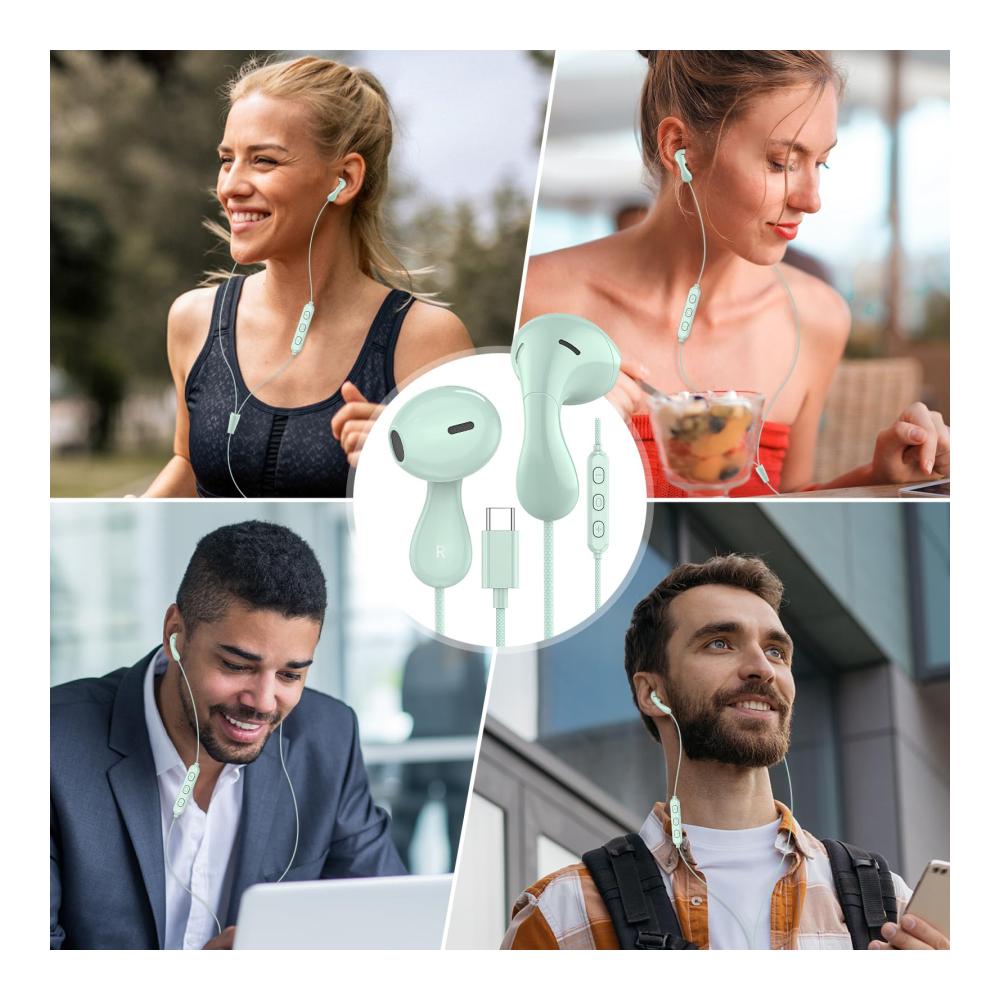 Unsere dunkelgrünen USB C In-Ear-Ohrhörer bieten ein außergewöhnliches Klangerlebnis. Mit ergonomischem Halbkopfhörer-Design und einem robusten, 1,2 Meter langen Kabel sind sie perfekt für unterwegs geeignet. Dank der High-Fidelity-Stereoklangqualität und der bequemen Inline-Steuerung erleben Sie Musik und Anrufe in herausragender Qualität. Das Paket enthält alles, was Sie brauchen, um Ihr Hörerlebnis zu optimieren. Perfekt für Unterhaltung, Reisen und Fitness.