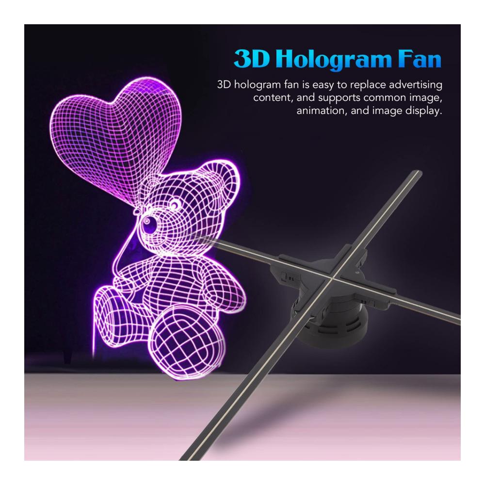 【Lebendiger】 Der Holigramm-Lüfter verfügt über einen 65 cm/25,6 Zoll großen Bildschirm ohne Hintergrund, 768 hochwertige Lampenperlen machen den holografischen 3D-Effekt deutlicher und die Auflösung von 1600 x 768 macht die Farbe lebendiger, High-Tech-Hologramm ist für Verbraucher sehr attraktiv und lockt mehr Kunden.