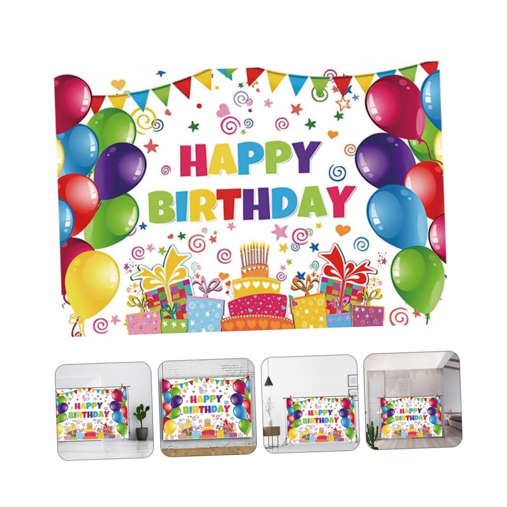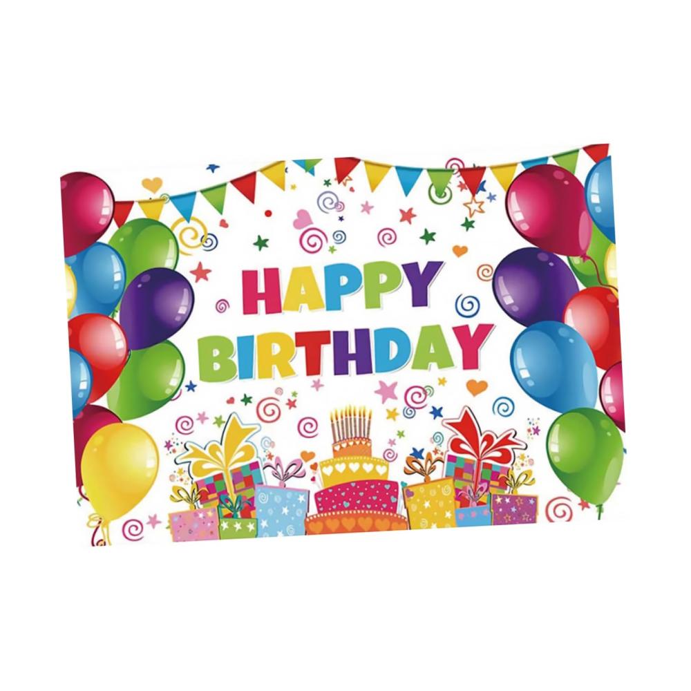 • Fröhliches geburtstagsbanner: bedruckt mit luftballonmustern. dieses hintergrundtuch kann für geburtstagsfeiern unterschiedlichen alters verwendet werden.