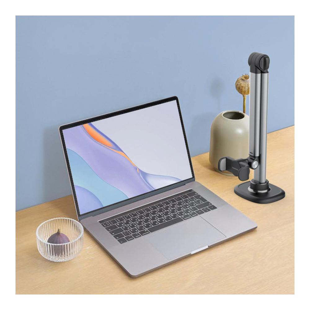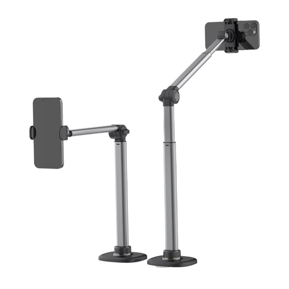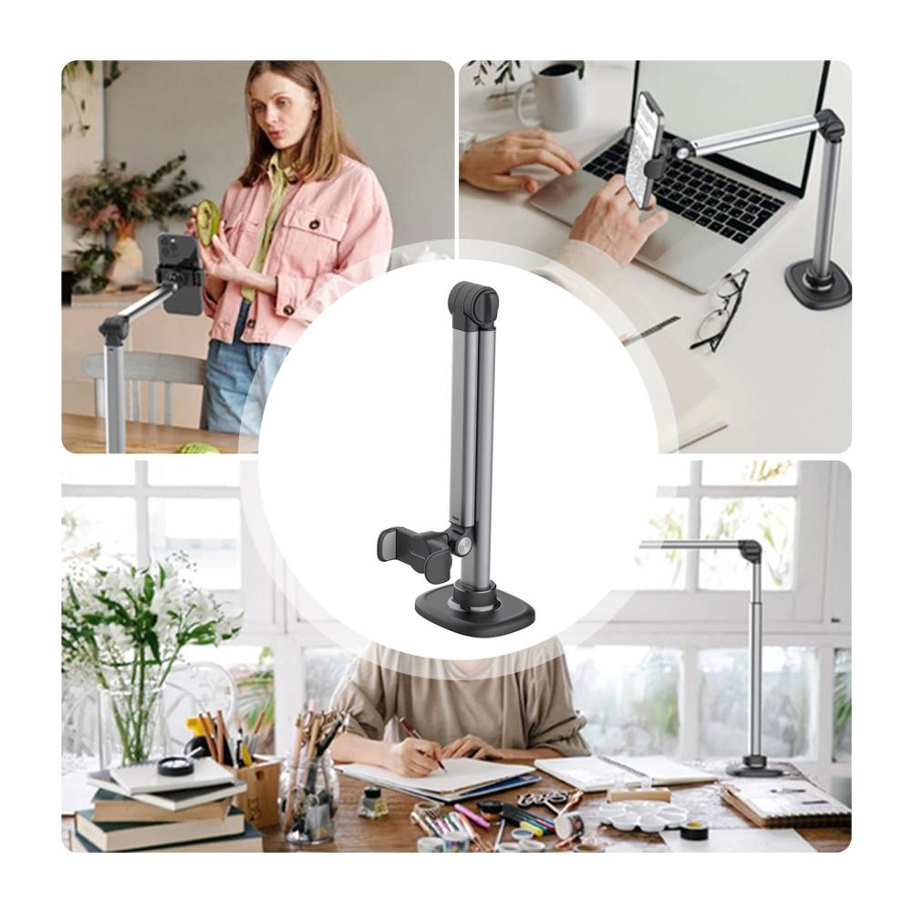 Der Telefonhalter ermöglicht müheloses Aufnehmen aus verschiedenen Winkeln dank des 360-Grad-drehbaren Kugelkopfs. Hergestellt aus eleganter Aluminiumlegierung ist er vielseitig einsetzbar für Ansehen, Lesen, Lernen und mehr.