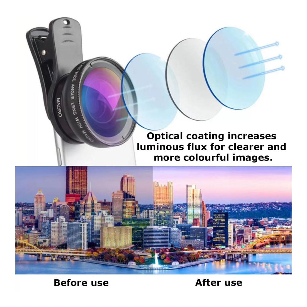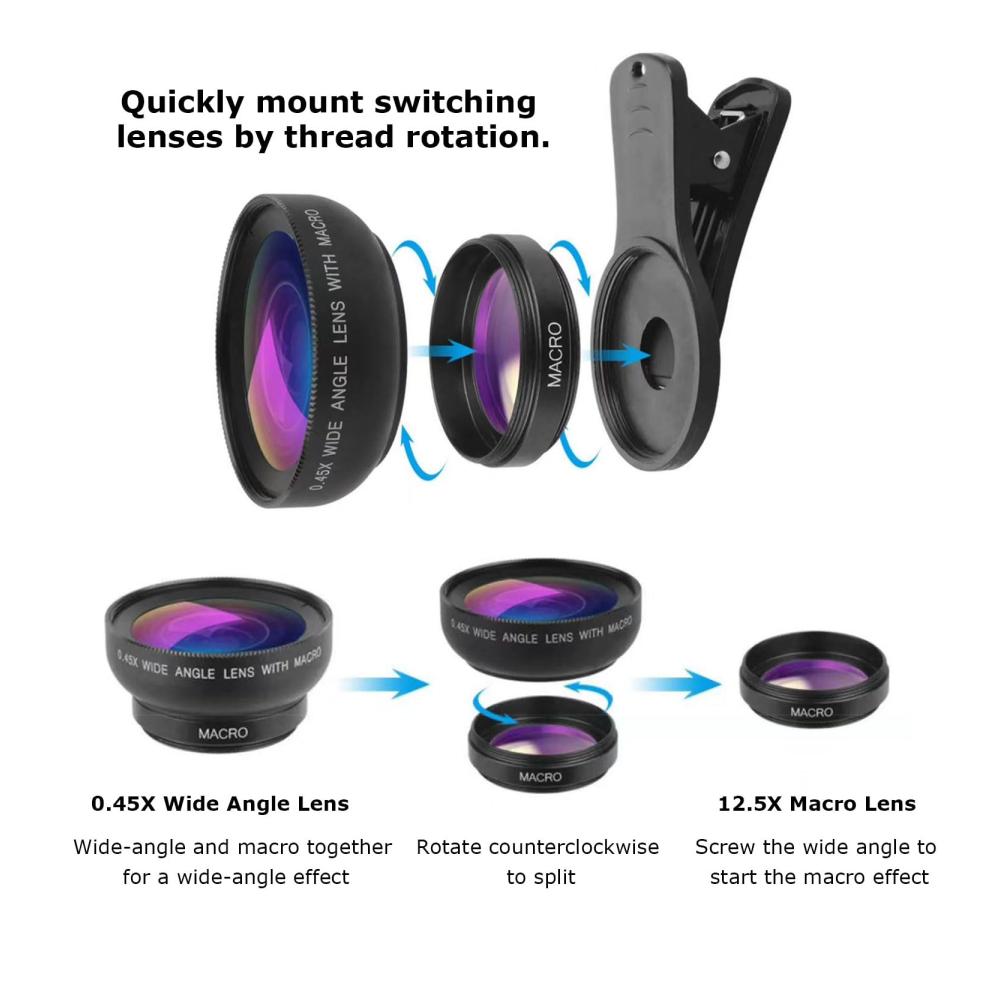 • Tauchen Sie mit dem universellen Telefonkamera-Objektiv-Set von JDCMEI in eine Welt der Fotografie ein. Dieses 2-in-1-Set bietet ein Weitwinkelobjektiv mit 0,45-facher Vergrößerung und ein Makroobjektiv mit 12,5-facher Vergrößerung für beeindruckende Aufnahmen. Die HD-Beschichtung minimiert Blendung und Reflexionen, während die hochwertige Aluminiumkonstruktion die Langlebigkeit gewährleistet. Mit dem Weitwinkelobjektiv erweitern Sie Ihr Sichtfeld für atemberaubende Landschaftsaufnahmen, während das Makroobjektiv feinste Details einfängt. Die breite Kompatibilität ermöglicht die Verwendung mit den meisten Smartphones und Tablets. Bitte beachten Sie: Um das Makroobjektiv zu verwenden, müssen Sie die beiden Objektive abschrauben und einen Abstand von 1-2 cm zum Motiv halten. Um das Weitwinkelobjektiv zu verwenden, lassen Sie die beiden Objektive verschraubt.