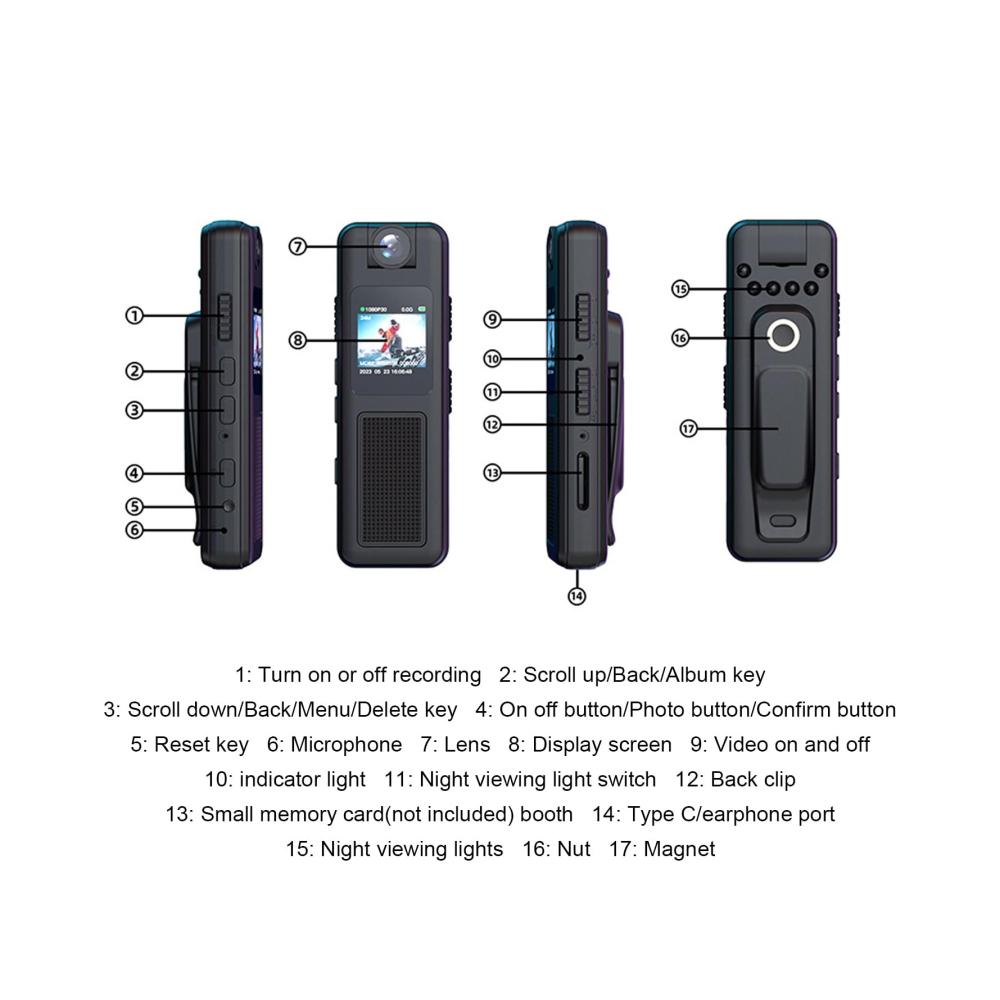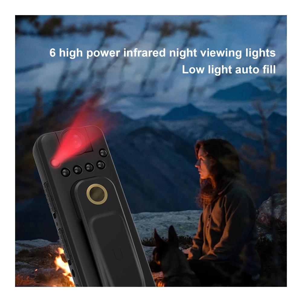 Die 6 leistungsstarken Infrarot-Nachtsichtlichter füllen dunkle Umgebungen perfekt aus, während der 0,85-Zoll-Farbbildschirm und Kopfhörerunterstützung ein umfassendes Aufnahmeerlebnis bieten.