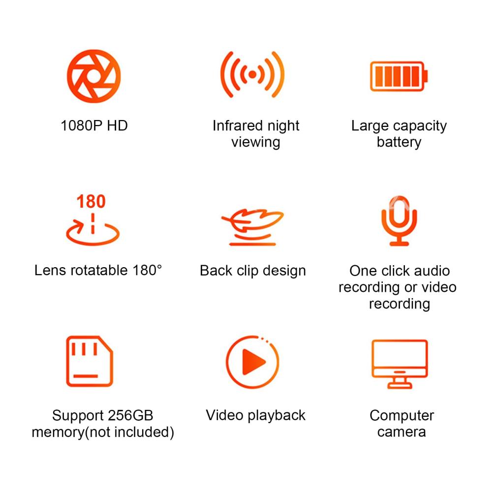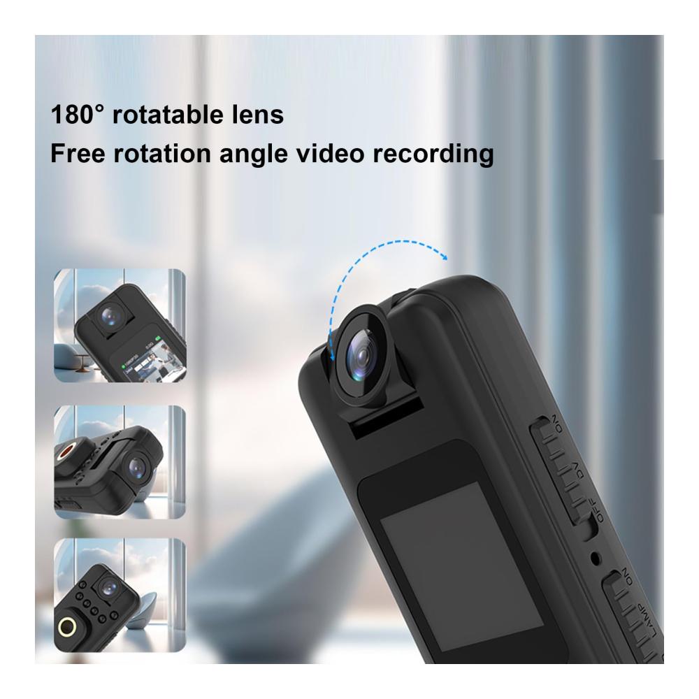 Erleben Sie beeindruckende Aufnahmen mit unserer am Körper getragenen Camcorder. Die 1080P HD-Auflösung und das 180-Grad-drehbare Objektiv erfassen dynamische Momente mit außergewöhnlichen Details.