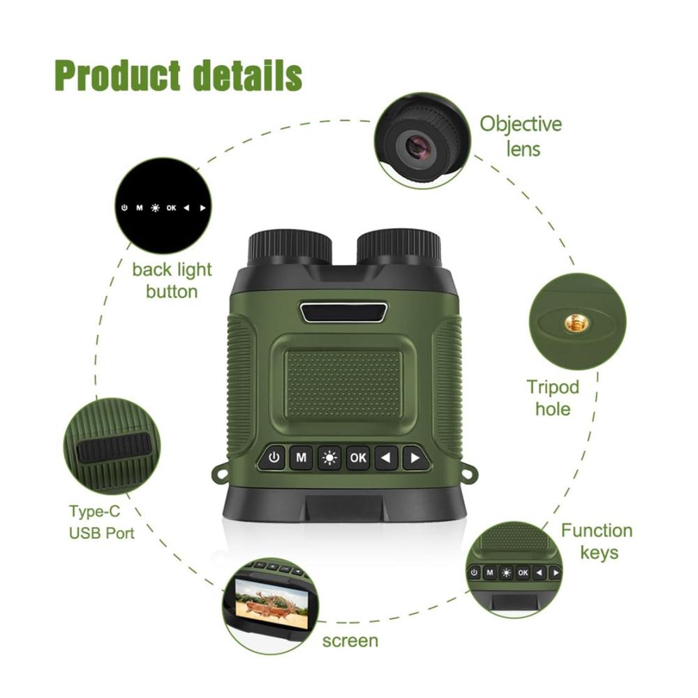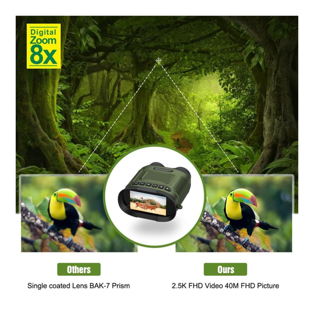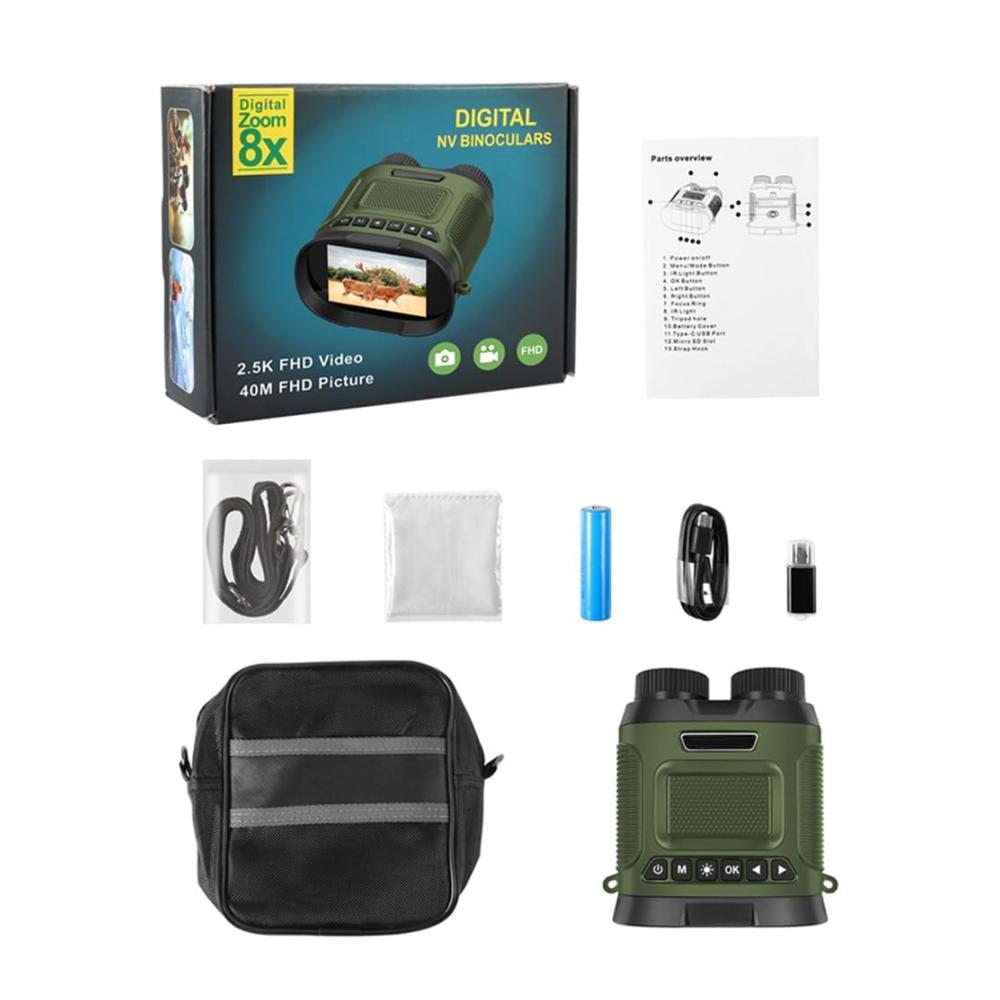 Erleben Sie mit dem Nachtsichtbrille 4K-Fernglas 2 5K-Infrarot-Nachtsichtgerät mit 8-fachem Digitalzoom für taktische Ausrüstung Camping Jagd von Hapihom die Welt der Dunkelheit auf eine völlig neue Art und Weise. Dieses binokulare Nachtsichtteleskop mit 850-nm-Infrarotstrahler und rein optischem System bietet eine klare Sicht auf Tiere oder Pflanzen in dunklen Umgebungen. Dank des 3-Zoll-High-Definition-Displays, 8-fachen Digitalzooms und 25-mm-Objektivöffnung eröffnet es ein umfassenderes Sichtfeld für Outdoor-Aktivitäten, Überwachung und Camping. Nehmen Sie hochauflösende Videos und Bilder auf und halten Sie die Details der Landschaft oder der Tiere fest. Das leuchtende Knopfdesign ermöglicht eine einfache Bedienung auch bei völliger Dunkelheit, während die rutschfeste, wasserdichte Hülle für einen sicheren Halt sorgt. Mit der mitgelieferten tragbaren Tasche ist das Nachtsichtgerät immer griffbereit. Tauchen Sie ein und entdecken Sie die Geheimnisse der Nacht!