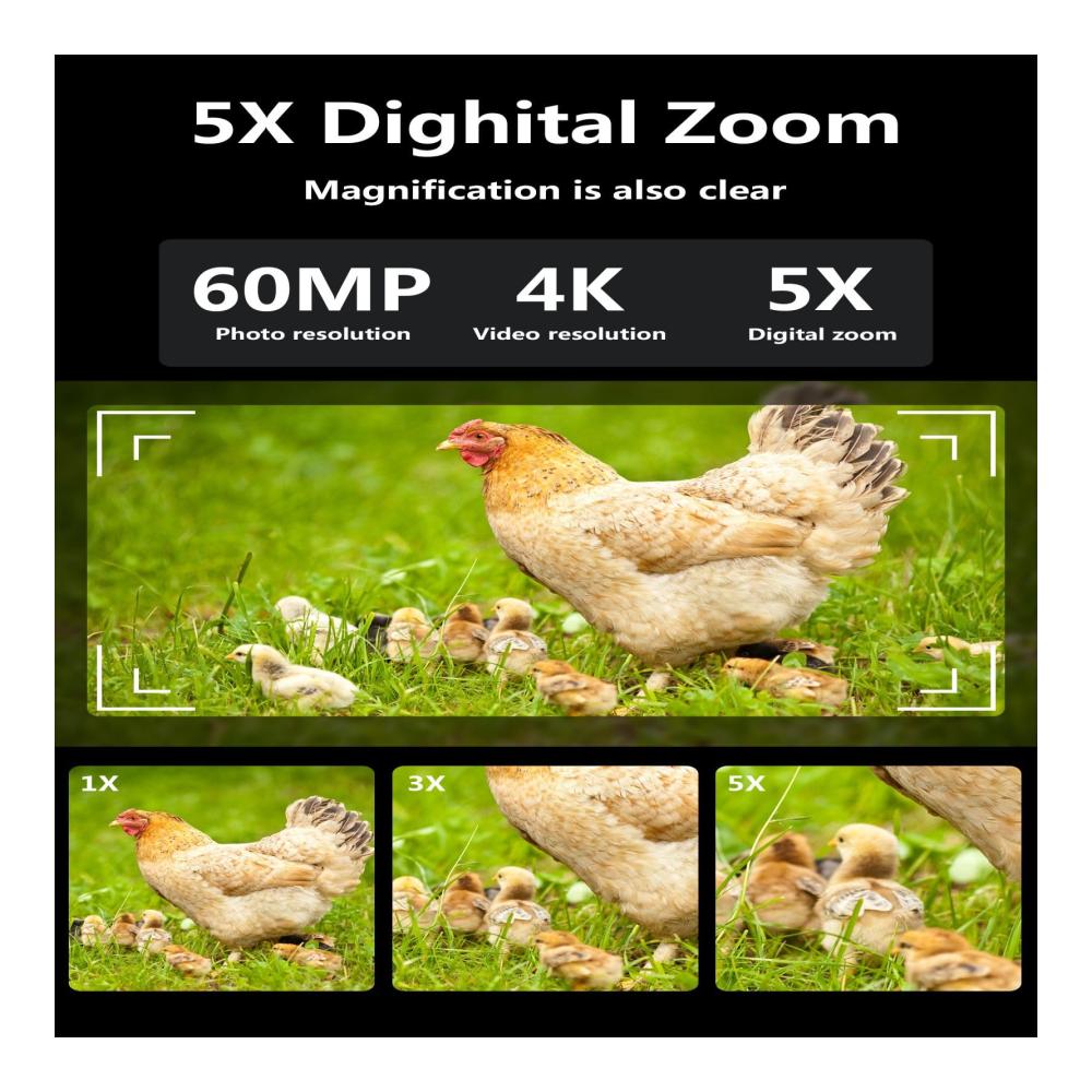 Erleben Sie mit unserem hochmodernen 4K-Nachtsichtfernglas klare Sicht in jeder Umgebung. Nehmen Sie hochauflösende Fotos und Videos auf, egal ob bei Tag, schwachem Licht oder Nacht. Mit einer beeindruckenden 60-MP-Auflösung und 4K-Videoqualität verpassen Sie kein Detail. Das 3-Zoll-Display und das 5-fache digitale Zoom sorgen für ein breites Sichtfeld, perfekt für Outdoor-Aktivitäten und Überwachung. Dank des wiederaufladbaren 5000-mAh-Akkus sind Sie immer bereit für neue Abenteuer. Lieferumfang: 1 Tasche, 1 Datenkabel, 1 Umhängeband und eine Bedienungsanleitung.