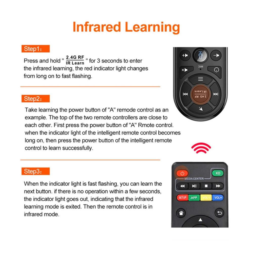 [IR-Lernfunktion] – Taste &34;2.4G RF / IR&34; kann nicht programmiert werden. Andere Tasten können Programmier- und Lernfunktion sein. (Roter Indikator ist IR-Modell / Indikator ist 2,4G-Modell)