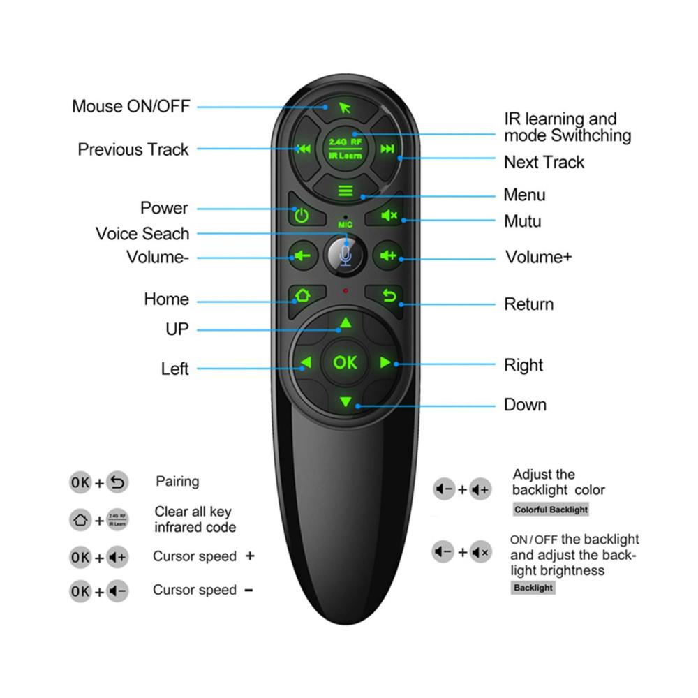 GYSURYB präsentiert die Q6 Pro Luft Maus 2.4G Drahtlose Sprach Fern Bedienung mit Hintergrund Beleuchtung und Gyroskop IR Lernen für Android TV Box. Diese Fernbedienung bietet ein hochmodernes Design mit Hintergrundbeleuchtung für eine verbesserte Bedienung bei schlechten Lichtverhältnissen. Bitte beachten Sie, dass die Sprachfernbedienung möglicherweise nicht mit allen Smart-TVs kompatibel ist. Die kompakte Größe von 160×43,5 mm und das leichte Gewicht von nur 76,5 Gramm machen sie zu einem praktischen Begleiter. Verabschieden Sie sich von komplizierten Bedienelementen und genießen Sie die einfache Handhabung mit der Q6 Pro Fernbedienung.