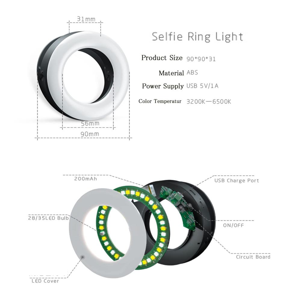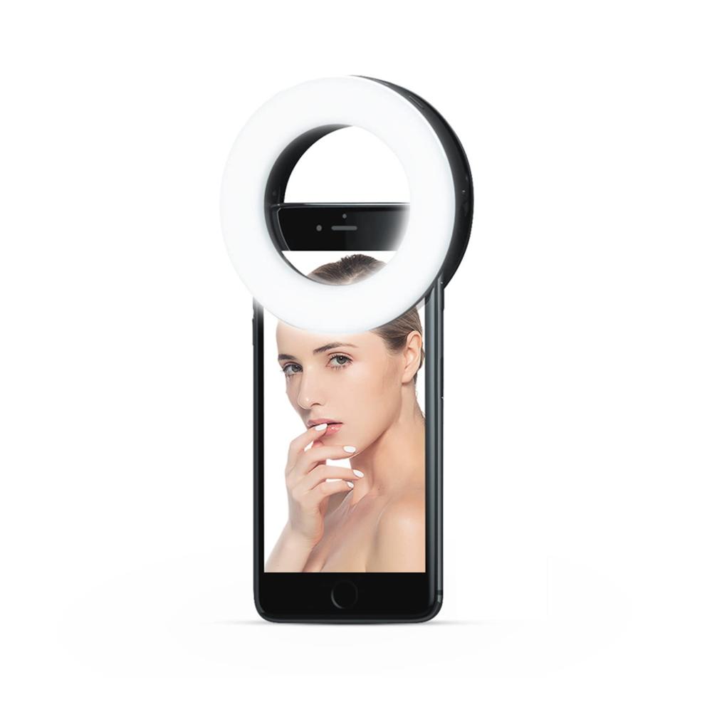 2.【Ringlicht mit 40 LEDs】 Das kleine Lichtring für Handy verfügt über 40 hochwertige LEDs mit geringem Energieverbrauch und geringer Wärmeabgabe. Egal, ob Sie sehr hell oder leicht hell sein müssen, halten Sie einfach die Taste gedrückt, um die gewünschte Helligkeitsstufe zu erreichen.