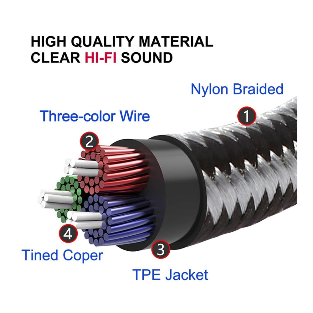 • Dreifach abgeschirmter Mantel, starkes, mit Nylon geflochtenes Äußeres, sicheres Design und sauerstofffreie Kupferverdrahtung.