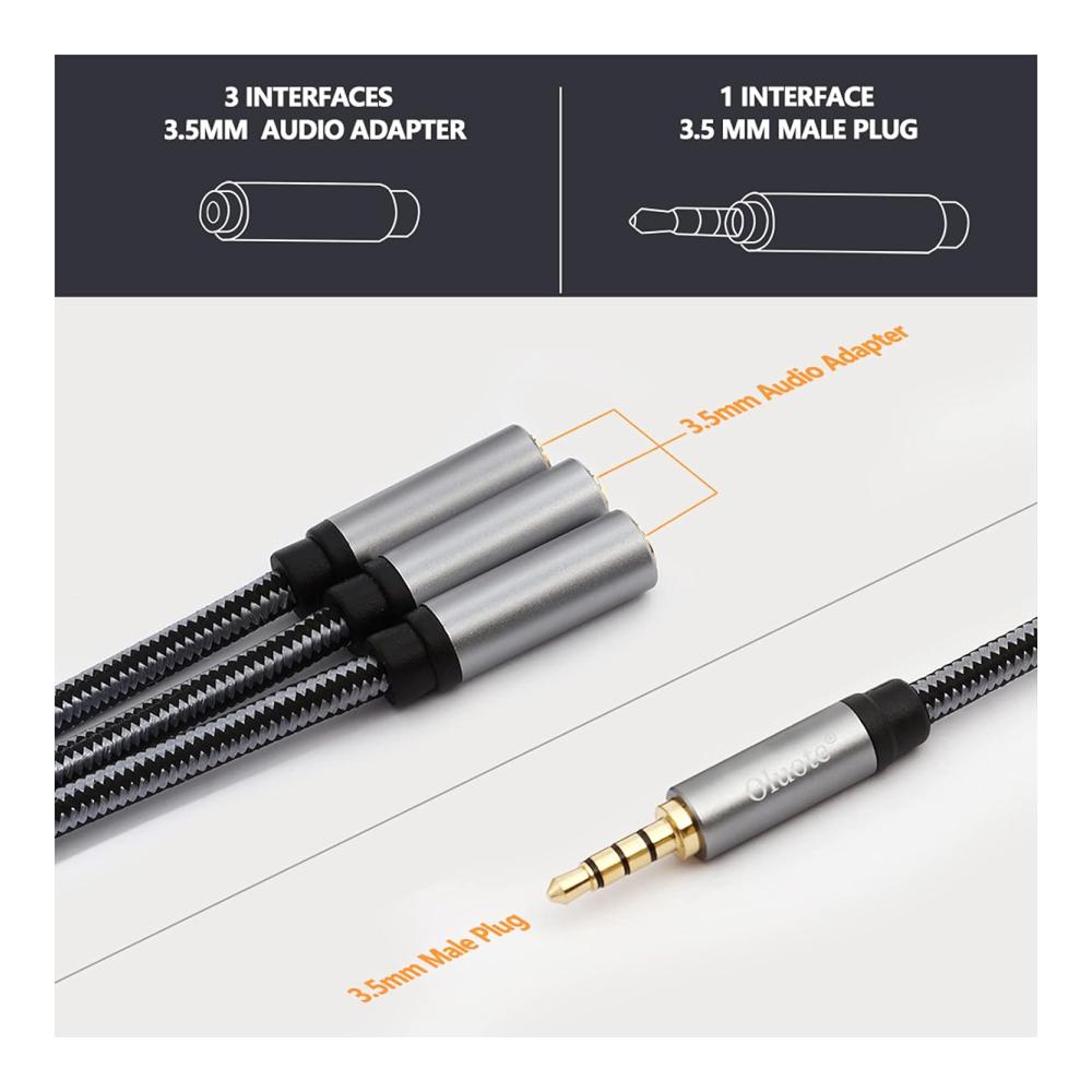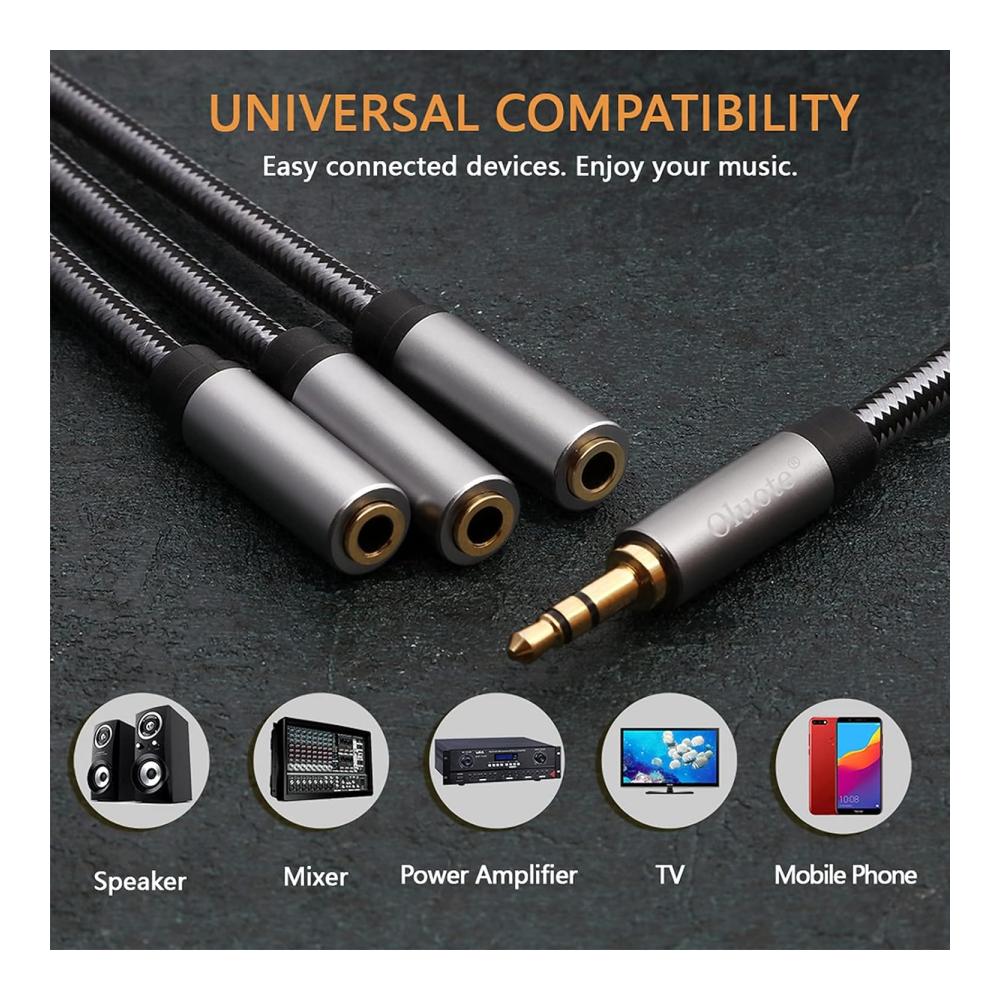 • Der 3,5-mm-Kopfhörer-Doppelbuchsen-Splitter liefert Stereo-Audio an drei weibliche Aux-Buchsen. Es hat eine gleiche Schallleistung über drei Seiten.
