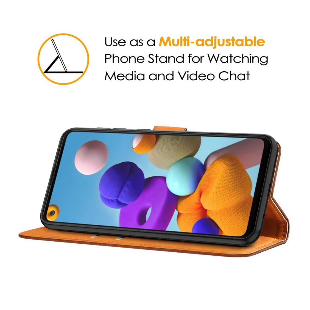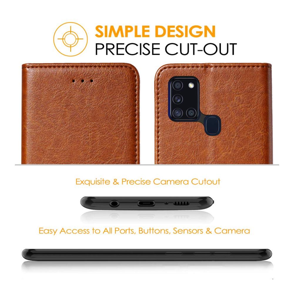 Peakally Samsung Galaxy A21s Hülle, Premium Leder Tasche Flip Wallet Case [Standfunktion] [Kartenfächern] PU-Leder Schutzhülle Brieftasche Handyhülle für Samsung Galaxy A21s-BraunPerfekte AusschnittSpeziell für Ihre Samsung Galaxy A21s, präzise Ausschnitte halten alle Anschlüsse und Anschlüsse leicht zugänglich, ohne das Gehäuse zu öffnen.Design mit Geldbeutel und KartenfächerPraktische Design Vereinfachen Sie Ihr Leben und Taschen mit diesem multifunktionalen Portemonnaie flip tasche.Schock AbsorbierenDie Weich TPU Innenschale die Handy Hülle ist aus einem speziellen TPU Material, Es kann die Ränder beider Seiten des Handy telefons abdecken und schützen.Hochwertigem MaterialGefertigt aus Haltbar PU-Leder auf der Außenseite, versorgen maximal Protektion vor Schmutz, Erschütterungen und Kratzern.Multi-Winkel StandfunktionWenn Sie das Lederhülle horizontal legen, Sie können den Bildschirm auf den Winkel den Sie mögen.Lebenslange GarantieKundenzufriedenheit ist uns wichtig und wir werden alles tun, um dies zu erreichen. Wenn Ihnen der Fall nicht gefällt, erstatten wir Ihnen 100% Ihres Geldes zurück. Plus Sie sind für das Leben des Falles geschützt,so dass Sie nichts zu verlieren haben.Paket Inhalt :PU Lederhülle* 1