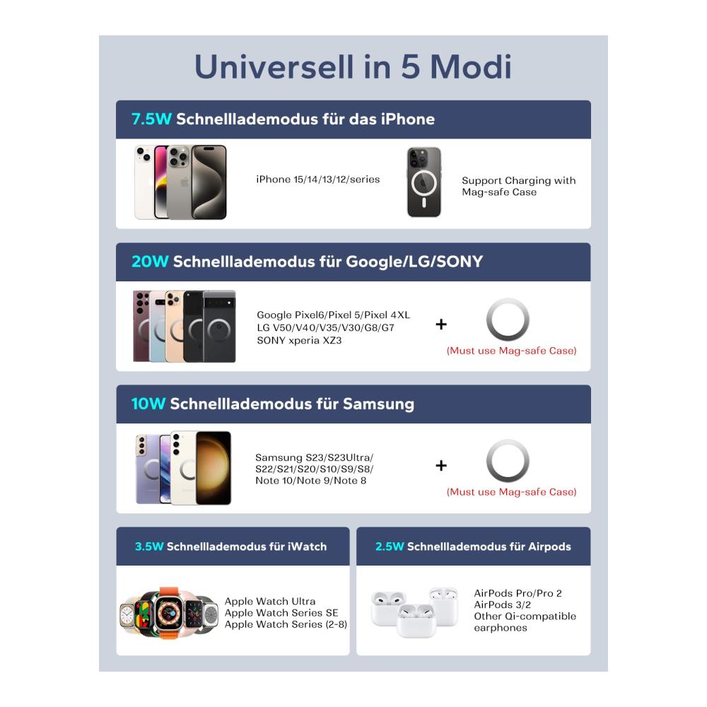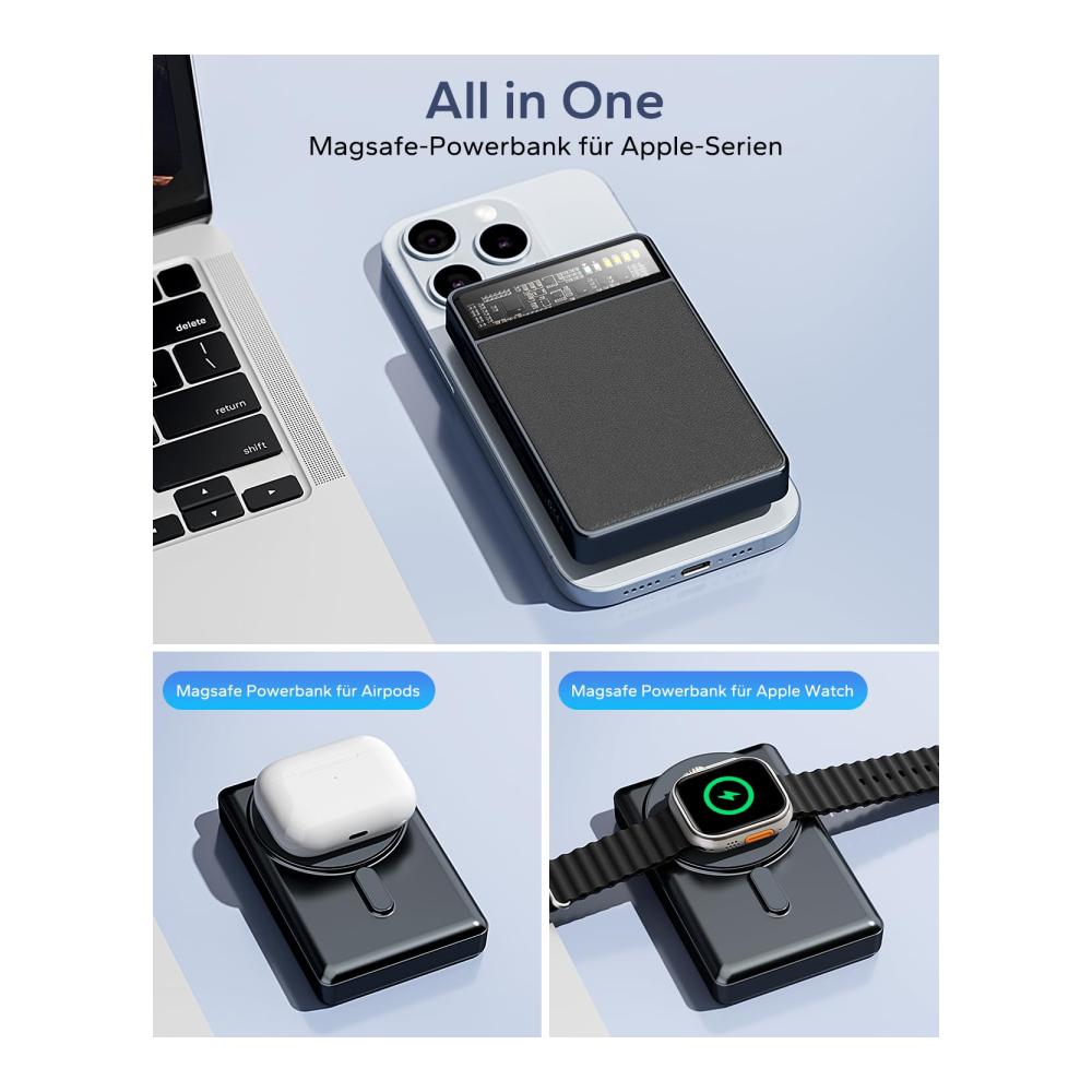 Die KPON Magsafe Powerbank ist eine leistungsstarke und vielseitige Lösung, die speziell für die neuesten Apple-Geräte entwickelt wurde. (Kann iPhone, Apple Watch und AirPods aufladen)