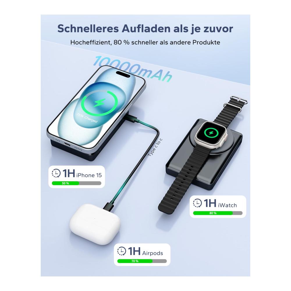【Exklusiv für Apple Powerbank】Anders als herkömmliche Magsafe Powerbank, lädt unser KPON Powerbank nicht nur Ihr iPhone, sondern auch Ihre Apple Watch. Mit seinem multifunktionalen und tragbaren Design ist es die ideale Wahl für Ihre Reisebedürfnisse.powerbank iphone