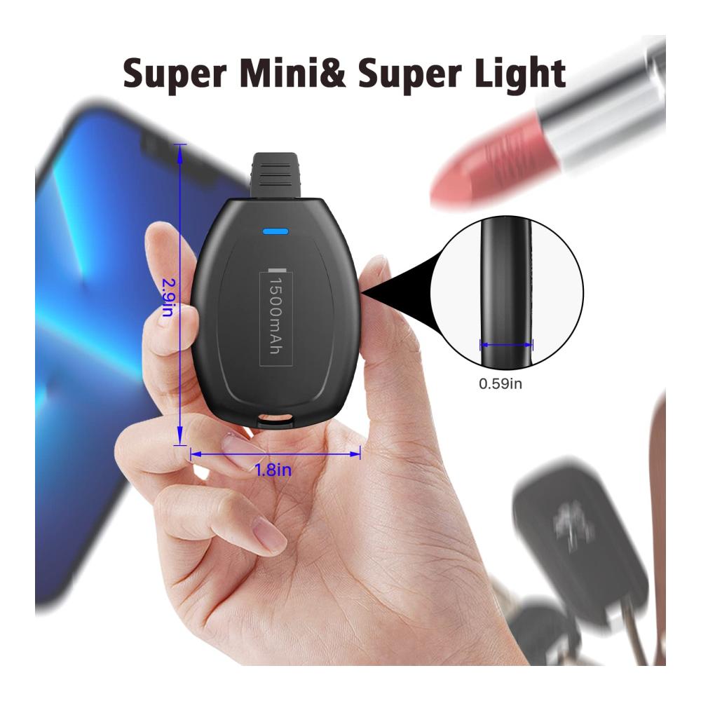 【Small Lightweight but Huge Capacity】Es ist ein leichtes leistungsfähiges 1600mAh Bulit-in iOS Pod Keychain Potable Ladegerät auf dem Markt, Größe nur 2,9 Zoll * 1,8 Zoll * 0,59 Zoll, 38g. Kann leicht rutscht es in jede Ihrer Taschen, Handtasche, Jacken, oder hängen Sie es auf Ihre Tasche, Rucksack.