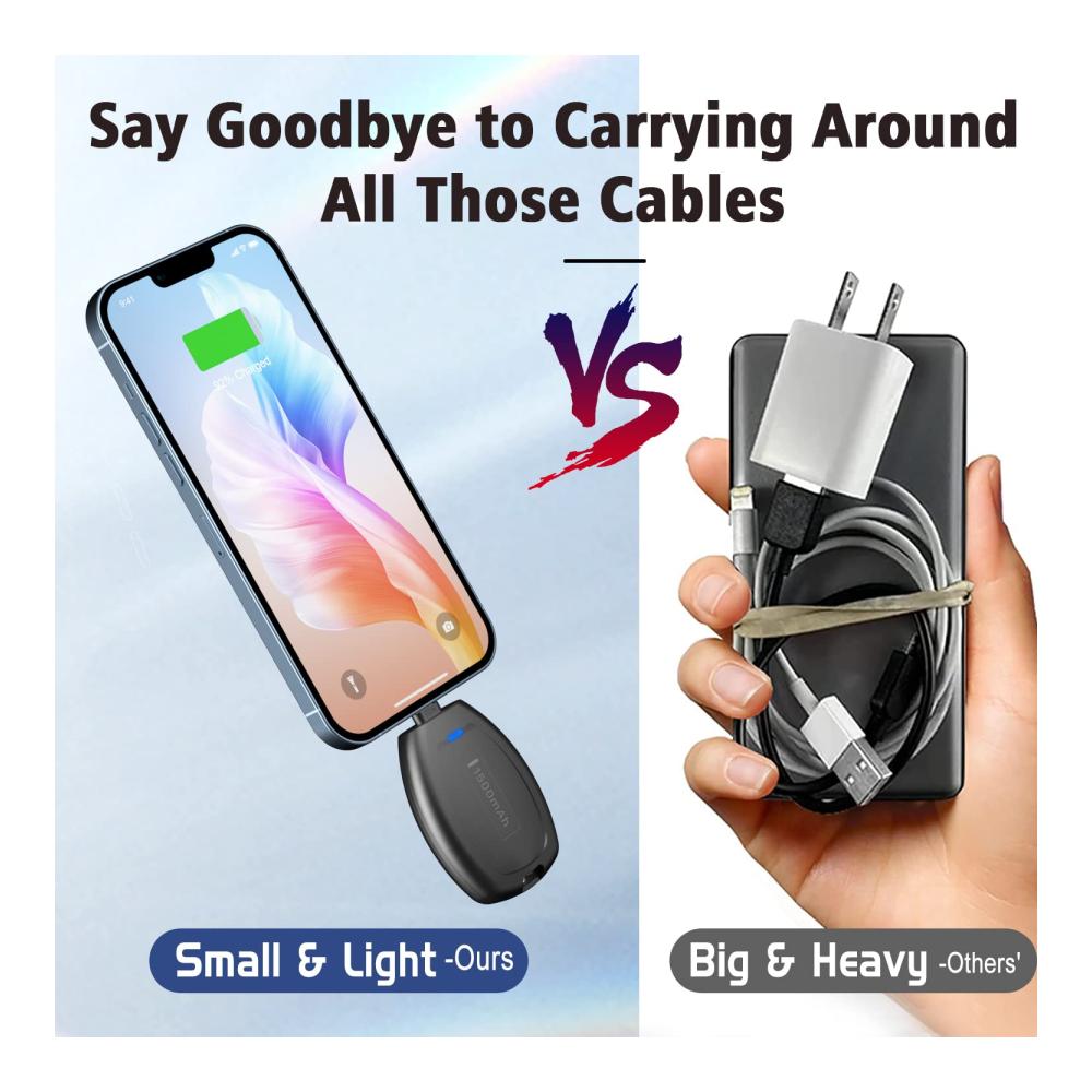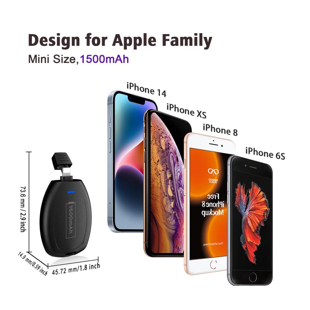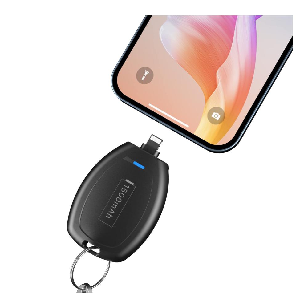 Tragbares 1600mAh Mini Emergency Power Pod für iPhone – Integrierter Mini Power Emergency Pod (iOS) – Schlüsselanhänger Ladegerät – Externes Schnelllade-Powerbank-Akkupack kompatibel für iPhone. Diese kompakte Powerbank bietet schnelle und zuverlässige Energie für Ihr iPhone. Mit einer Kapazität von 1600mAh und einem eingebauten Notfall-iOS-Anschluss ist sie perfekt für unterwegs geeignet. Dank des schlanken Designs und des praktischen Schlüsselanhängers ist sie immer griffbereit. Ideal für iPhone-Nutzer, die eine zuverlässige Stromquelle benötigen.