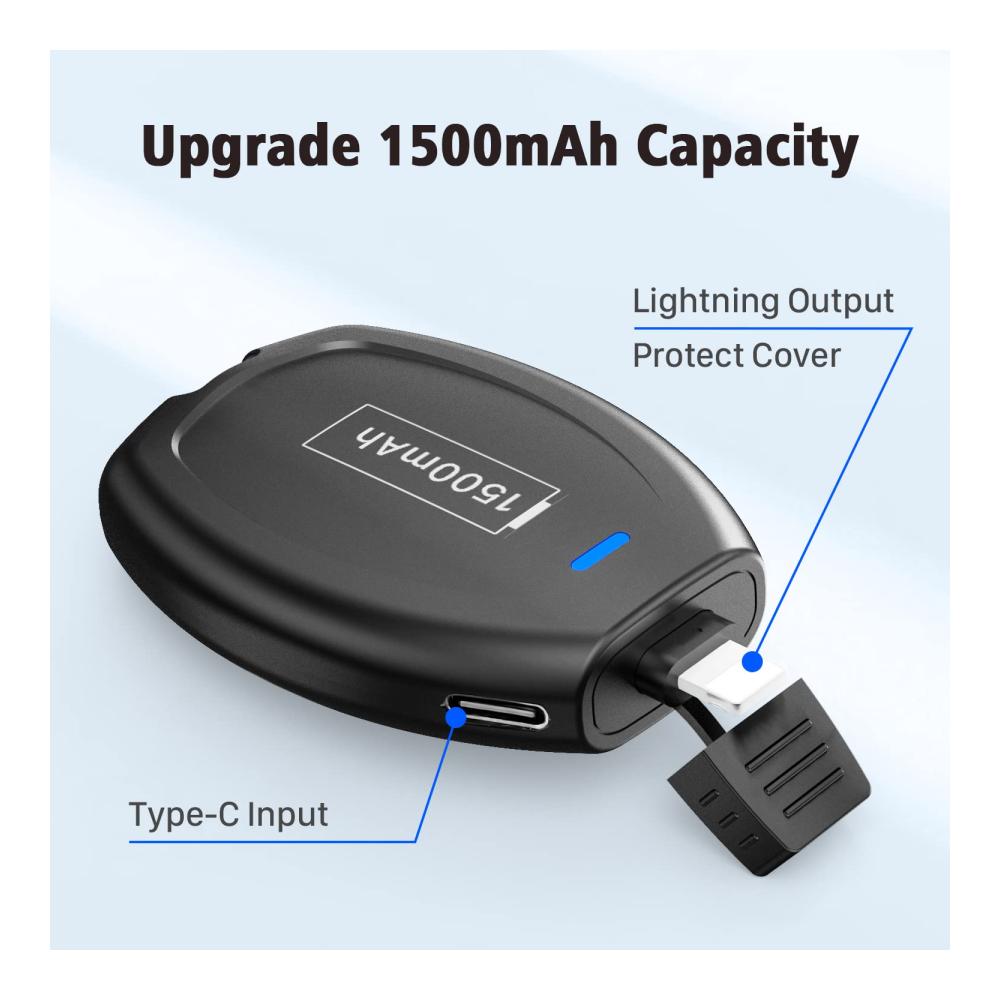 1600mAh Mini Emergency Power Pod für iPhone, Eingebauter Mini Power Emergency Pod (iOS), Schlüsselanhänger tragbares Ladegerät, externes Schnelllade-Powerbank-Akkupack kompatibel für iPhone