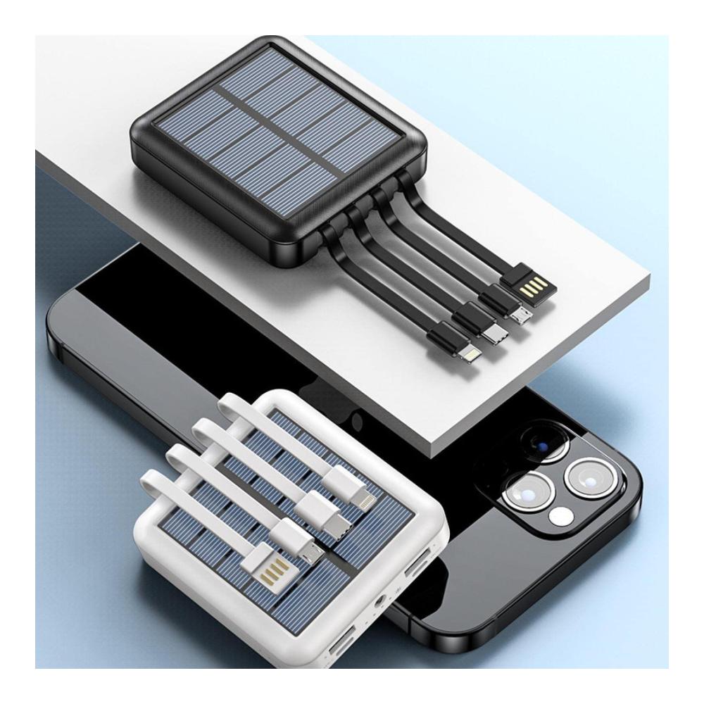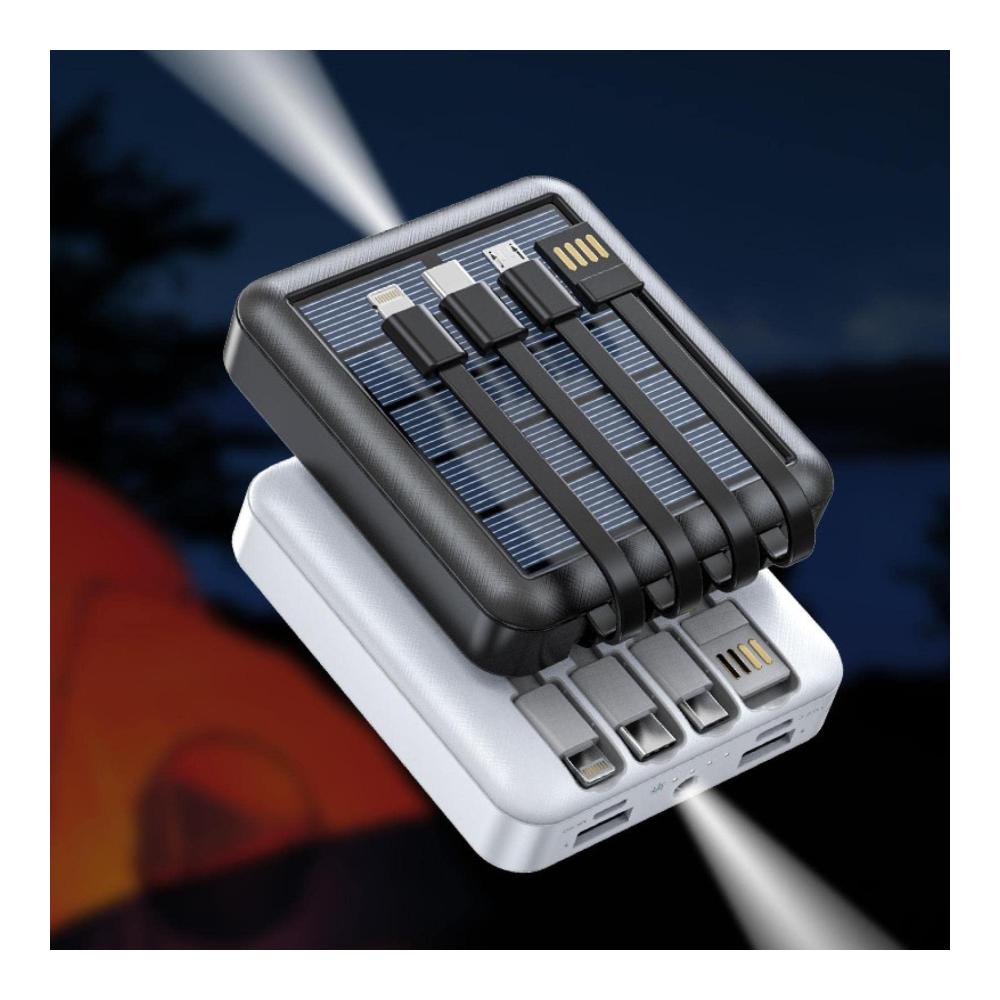 Solar Power Bank 20000 mAh – Große Kapazität, inklusive 4-Draht-Powerbank-Licht und dünnem, tragbarem Design – Weißes Geschenk – 10000 mAh
